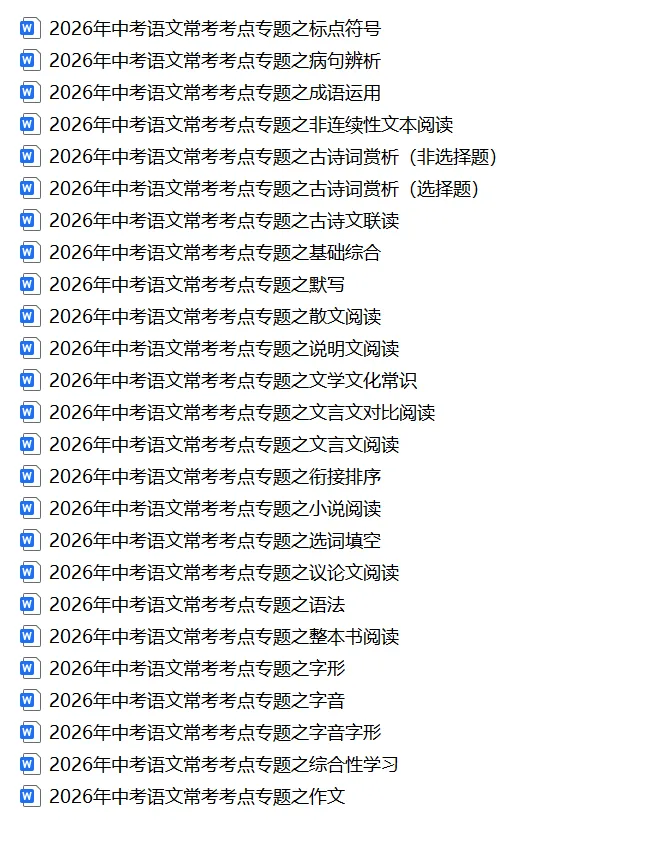 2026《中考语文常考考点专题》,可下载打印