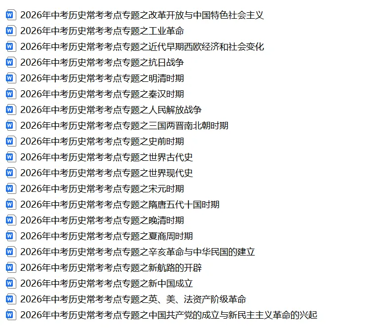 2026《中考历史常考考点专题》,可下载打印