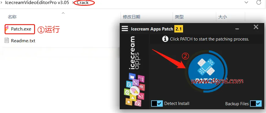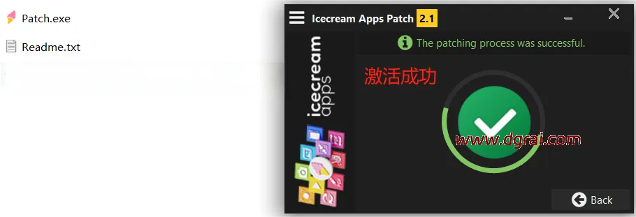 3、进入Crack文件夹,以管理员身份运行补丁文件“Patch.exe”,点击“Patch”图标,直到出现成功的√