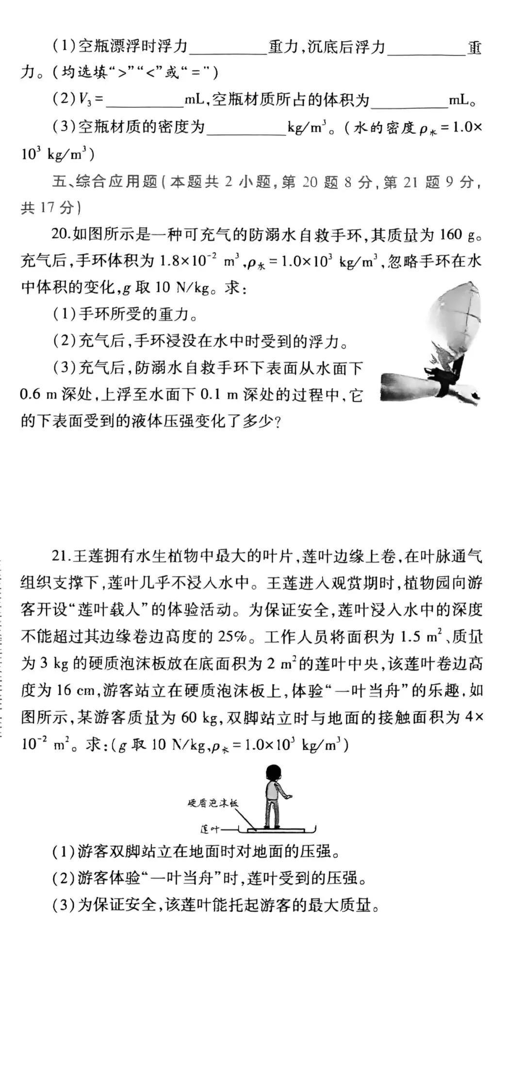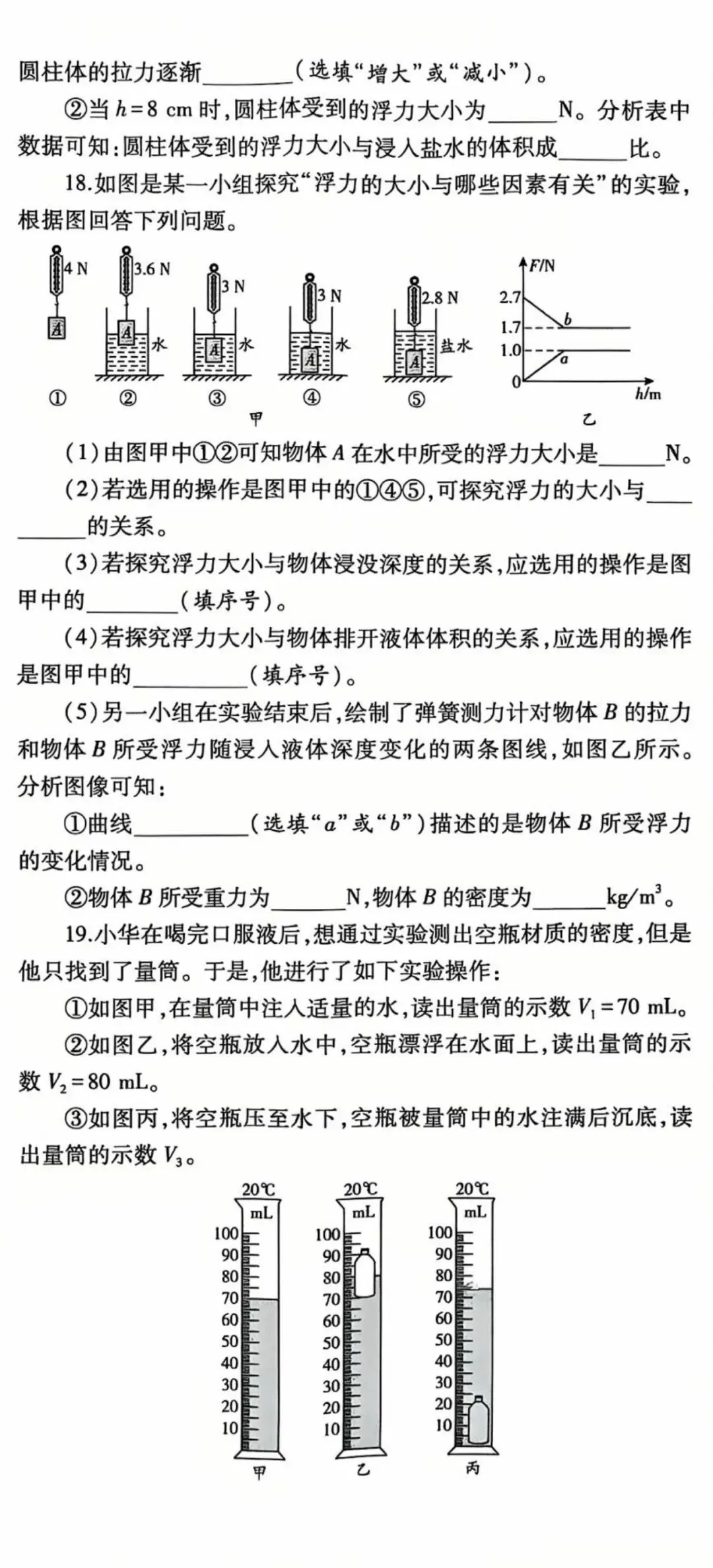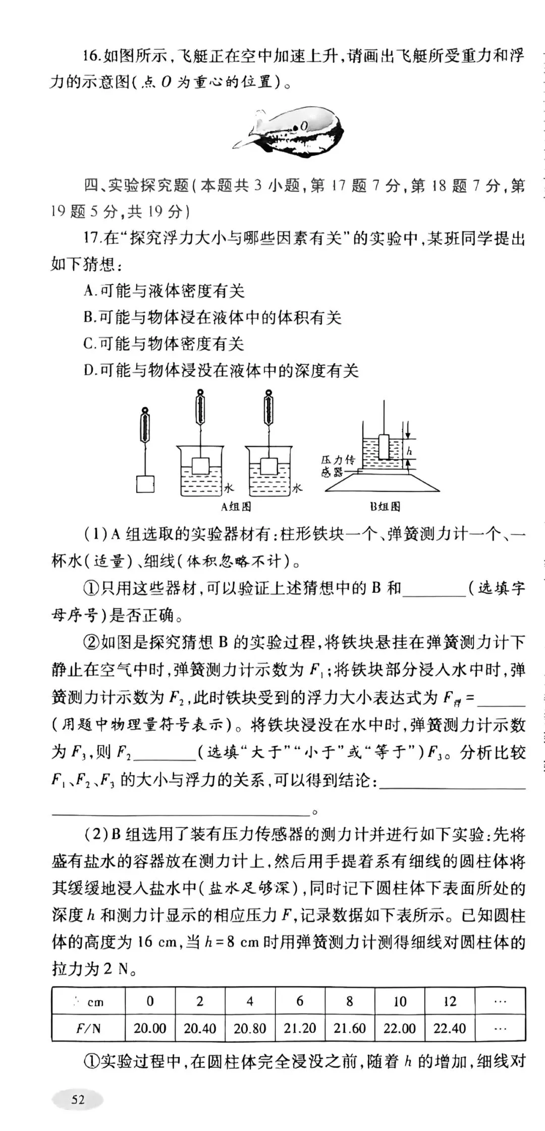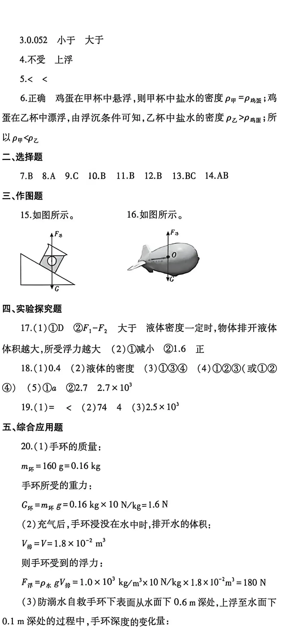 初中物理浮力单元测试2卷高清版(可打印)带答案