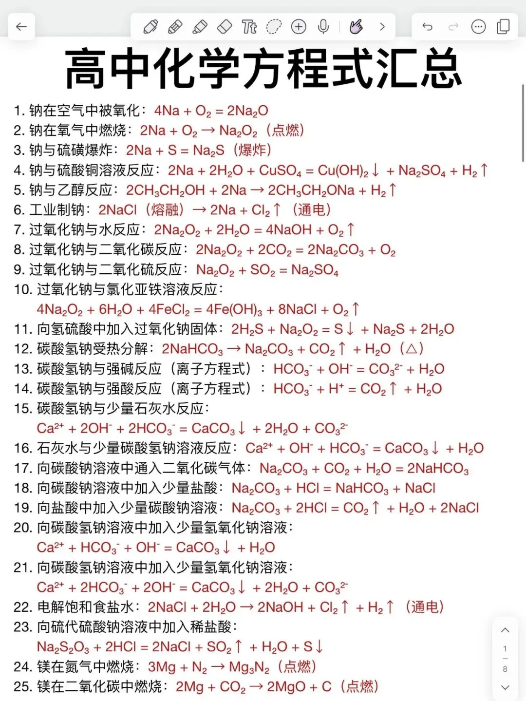 【高中化学】化学方程式汇总!高中生通用!可打印!