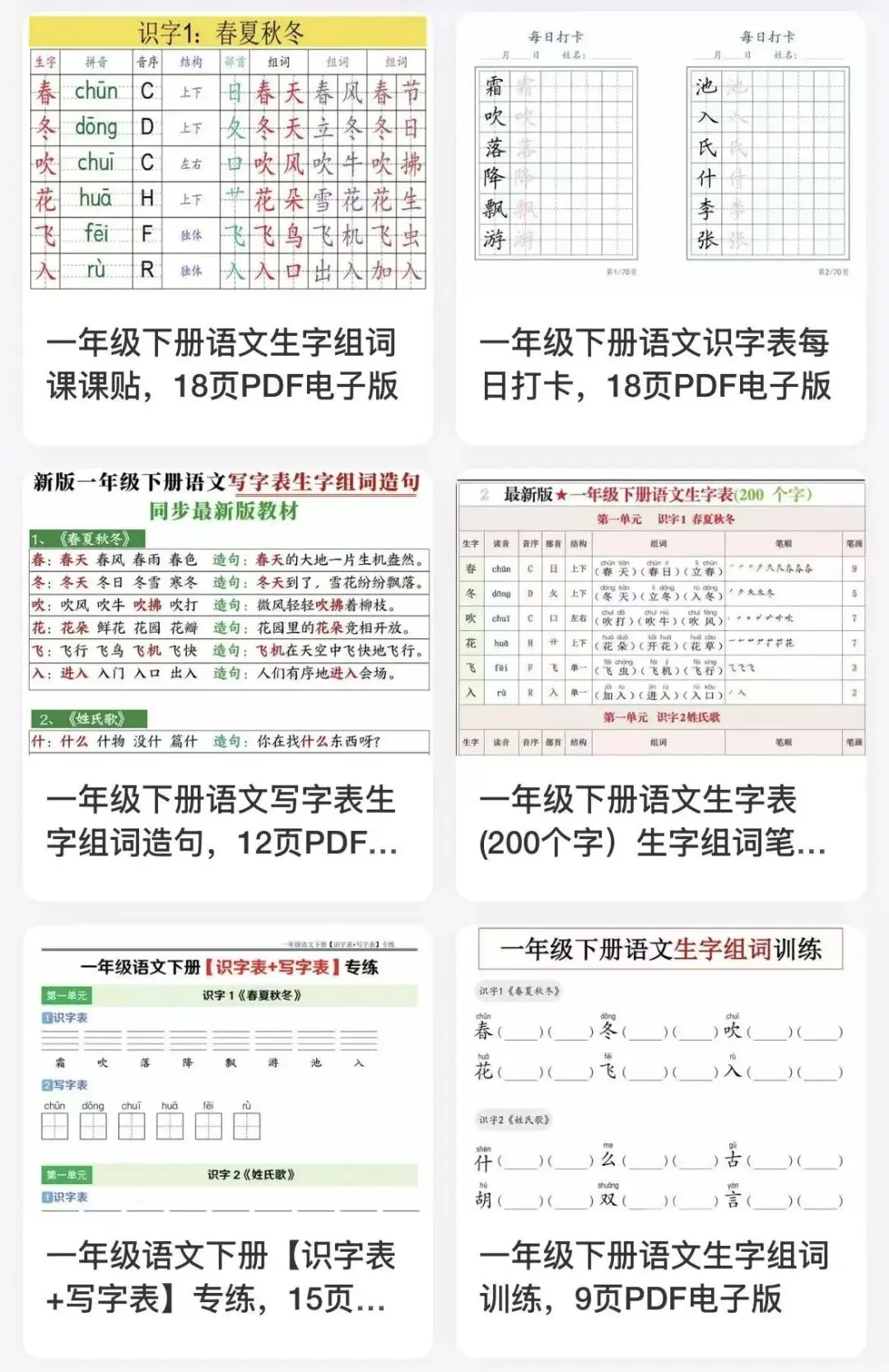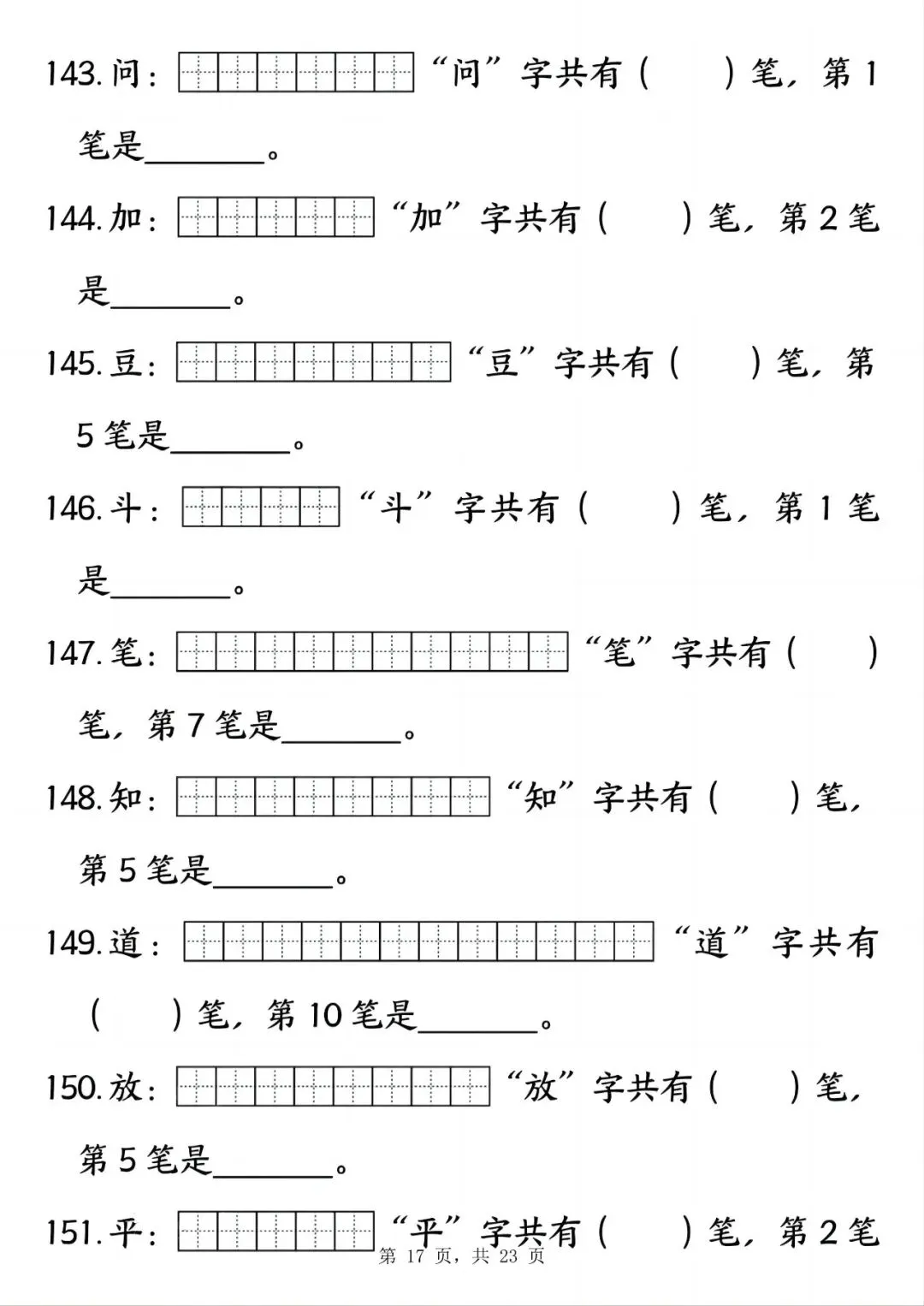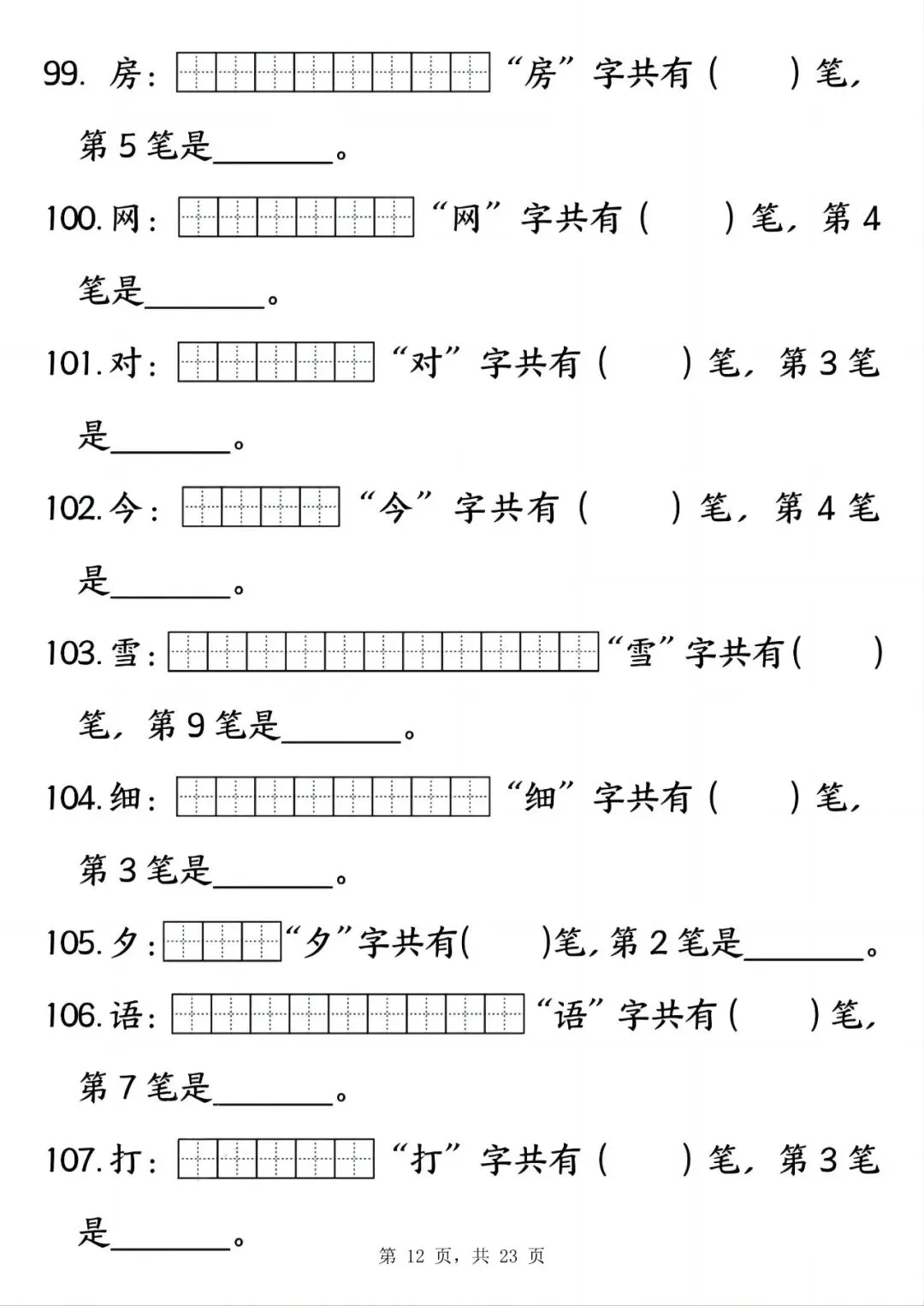 大家好,这里是淘学学资料库,这份《一年级下册语文笔画笔顺专项练习》,完整 pdf 电子档共 23 页。这份资料针对一年级下册全册生字开展笔顺笔画专项训练,逐个列出课本重点汉字的总笔画数与指定笔顺答案,覆盖春、冬、花、飞、青、清、明、阳等高频易错字,题型直接、重点突出,专门解决孩子笔顺写错、笔画数不清的问题。这份专项练习按课文生字顺序系统编排,把最容易写错笔顺的汉字全部整理到位,每字标注总笔画和关键笔形,训练目标明确、练习简洁高效,能快速规范孩子书写习惯,强化笔顺规则记忆,适合课前预习、课后巩固、考前突击查漏,是打好低年级汉字书写基础的必备练习资料。