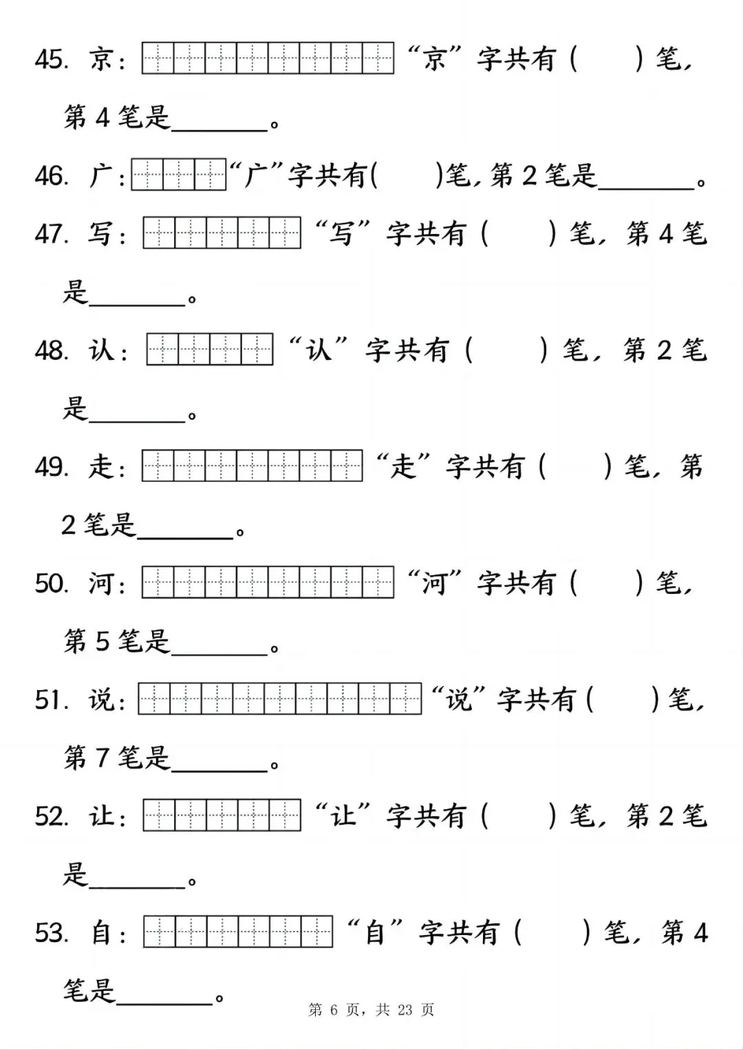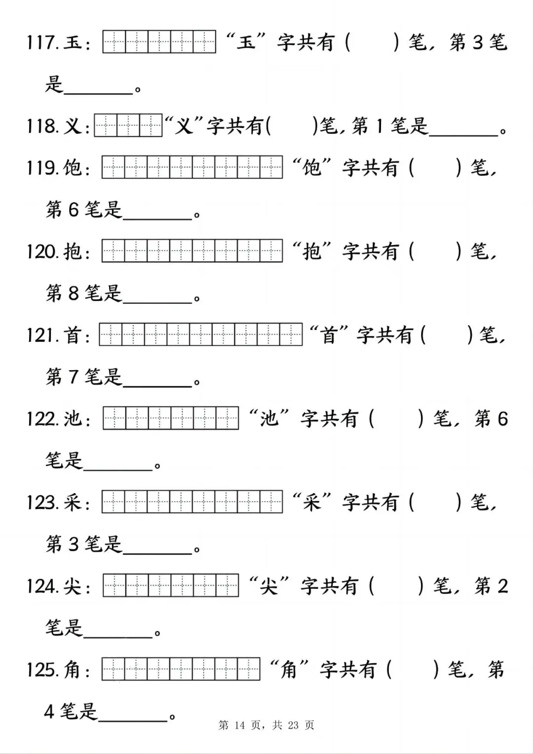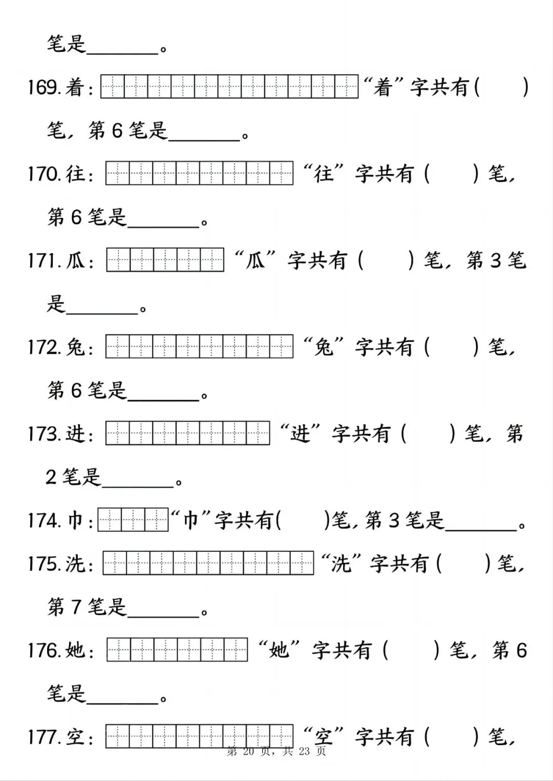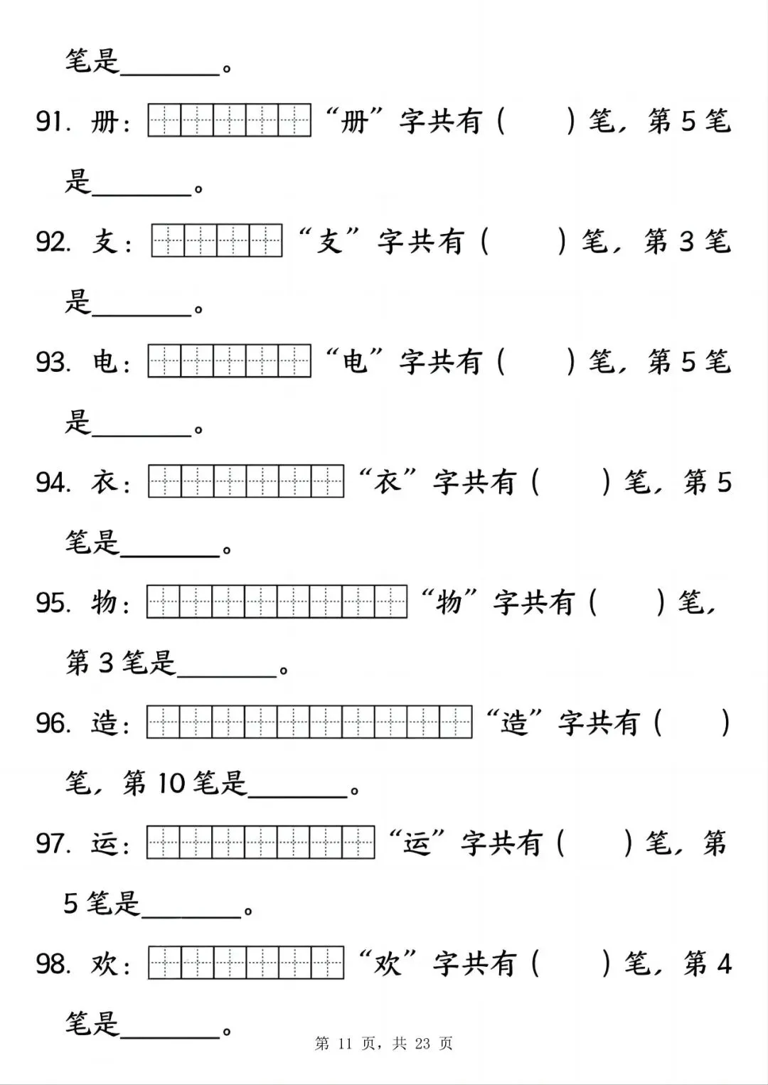 大家好,这里是淘学学资料库,这份《一年级下册语文笔画笔顺专项练习》,完整 pdf 电子档共 23 页。这份资料针对一年级下册全册生字开展笔顺笔画专项训练,逐个列出课本重点汉字的总笔画数与指定笔顺答案,覆盖春、冬、花、飞、青、清、明、阳等高频易错字,题型直接、重点突出,专门解决孩子笔顺写错、笔画数不清的问题。这份专项练习按课文生字顺序系统编排,把最容易写错笔顺的汉字全部整理到位,每字标注总笔画和关键笔形,训练目标明确、练习简洁高效,能快速规范孩子书写习惯,强化笔顺规则记忆,适合课前预习、课后巩固、考前突击查漏,是打好低年级汉字书写基础的必备练习资料。
