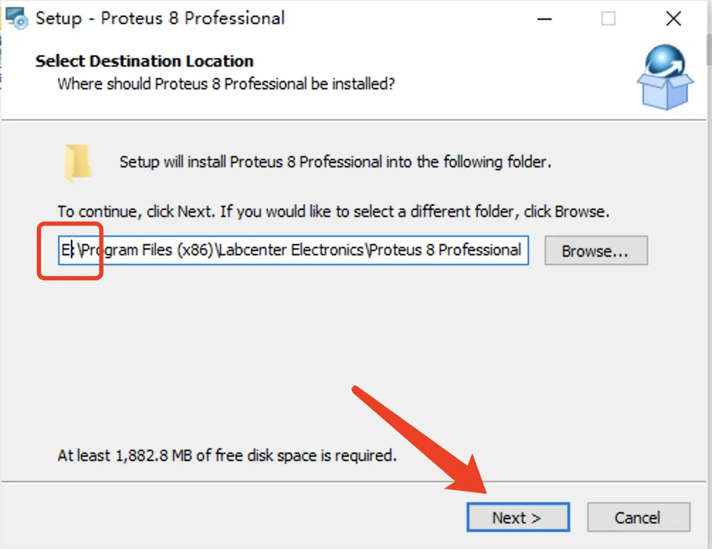 3.修改路径地址中的首字符C可更改安装位置(建议更改到D盘或者E盘),选择点击【Next】。