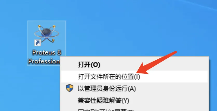 9.返回桌面找到【Proteus 8 Professional】图标鼠标右键选择【打开文件所在位置】。