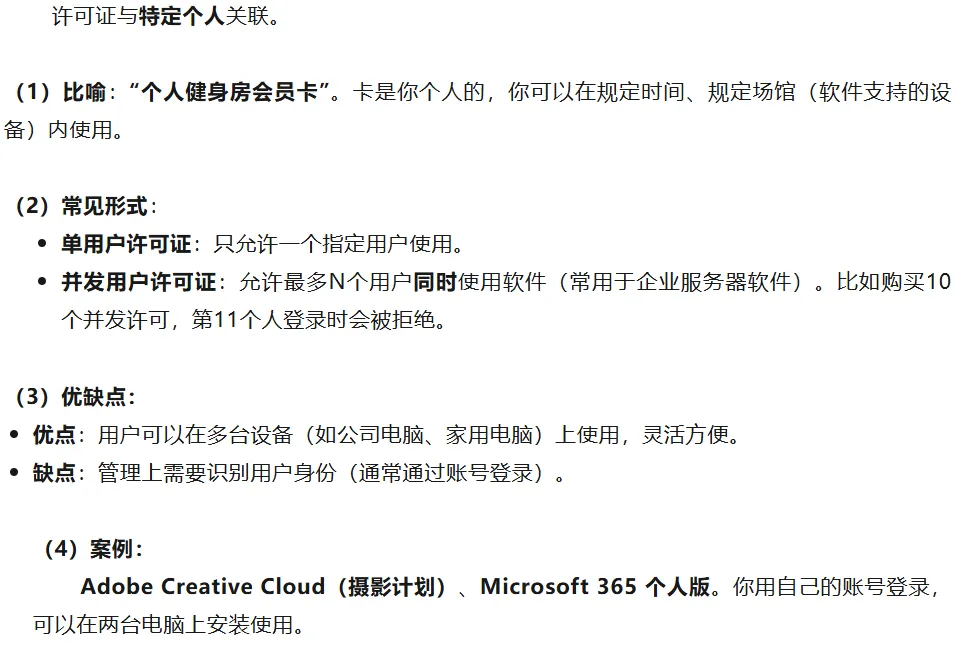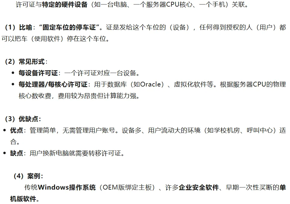 可以用“交通工具的租赁/购买方式”来比喻——许可证与“使用主体”关联,以及如何授权和计费。