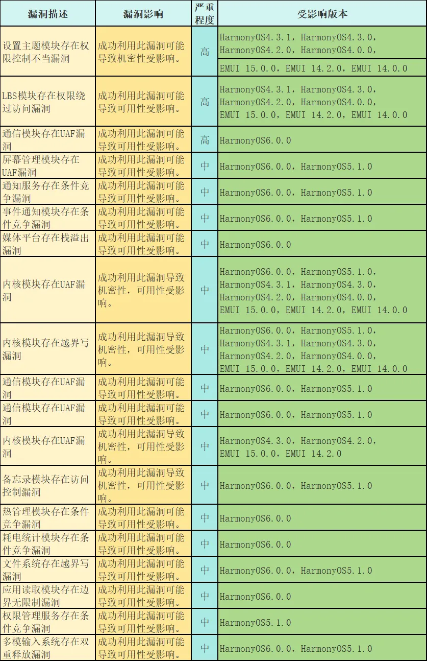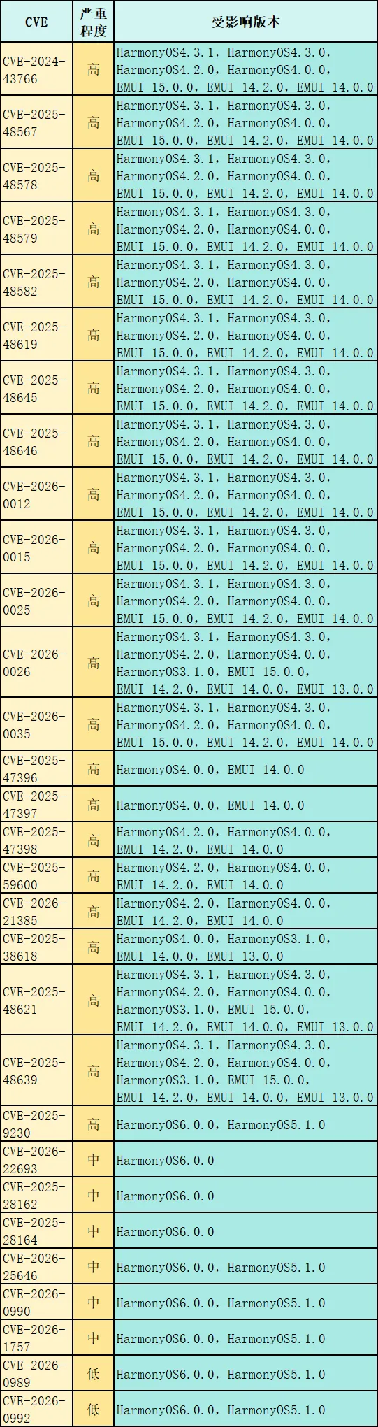 HarmonyOS4.3.1,HarmonyOS4.3.0,HarmonyOS4.2.0,HarmonyOS4.0.0,EMUI 15.0.0,EMUI 14.2.0,EMUI 14.0.0