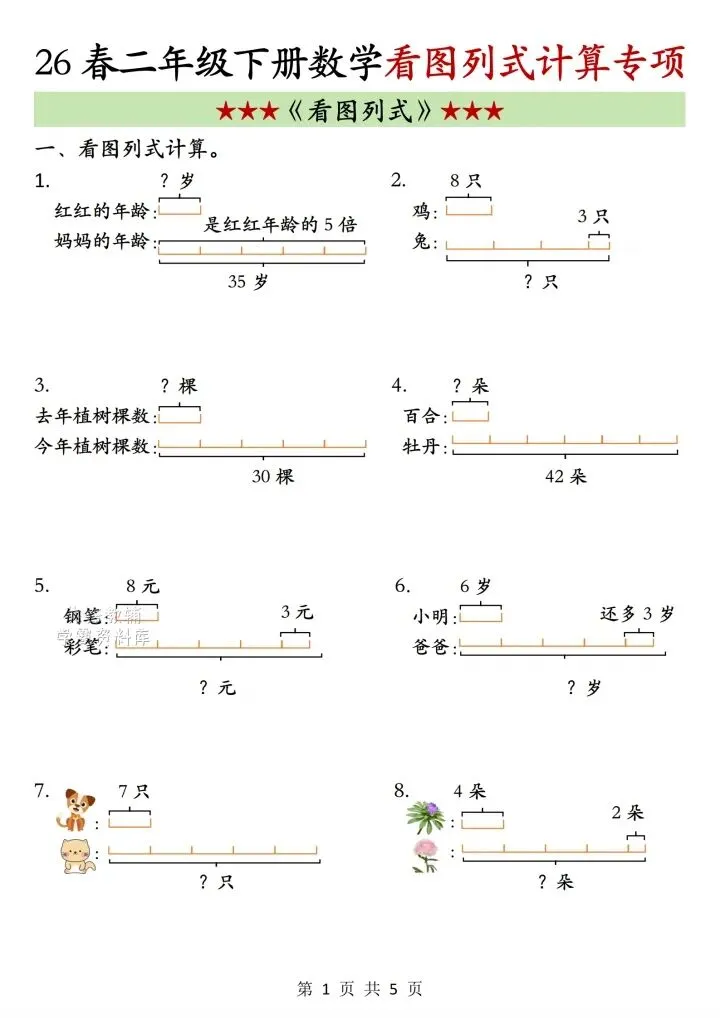 今日份分享二年级下册数学看图列式计算专项(完整电子版可打印)!这份资料已经整理成可打印版本,方便孩子随时翻看学习,建议家长先收藏,再转发给身边有需要的家庭,一起帮助孩子高效学习~