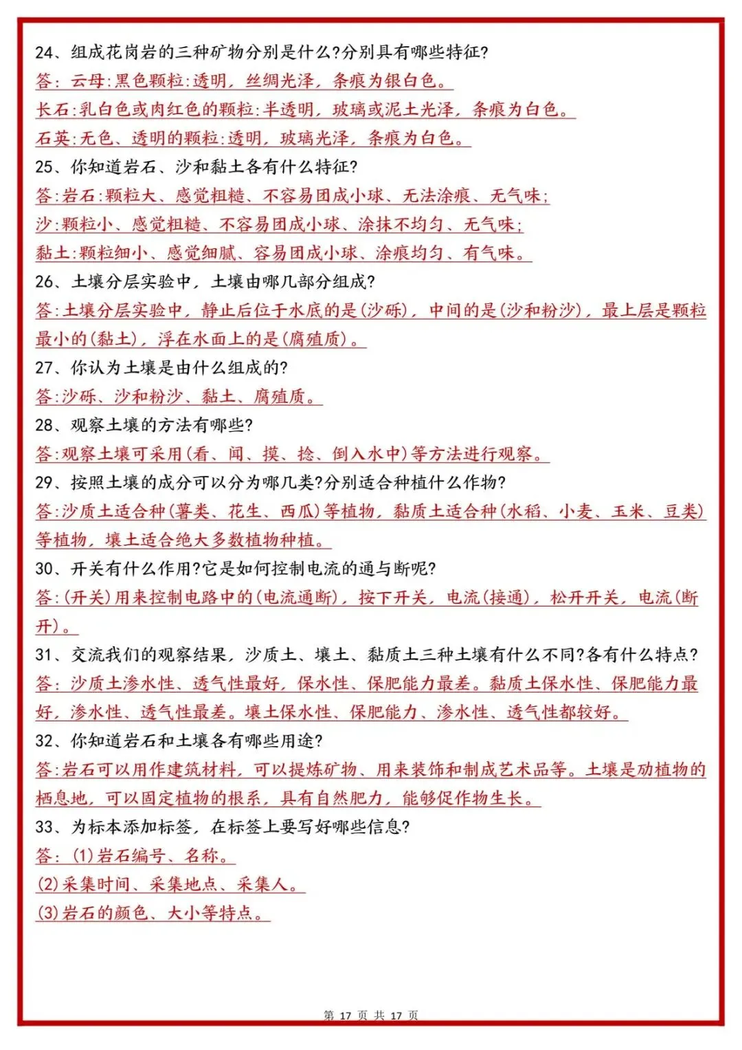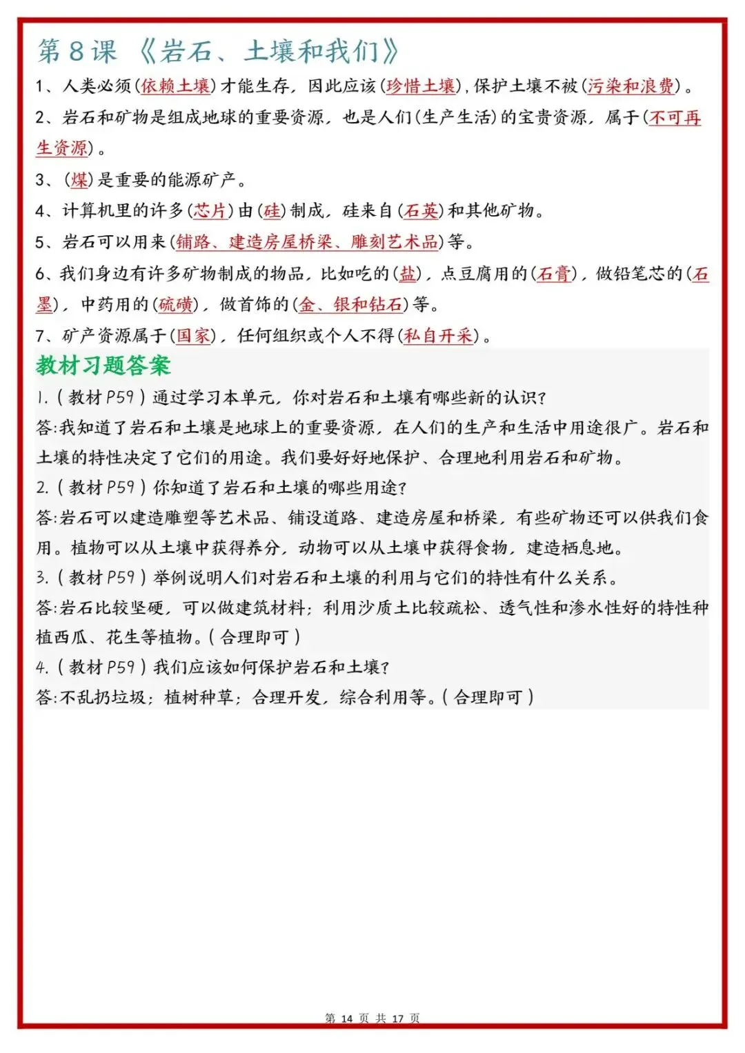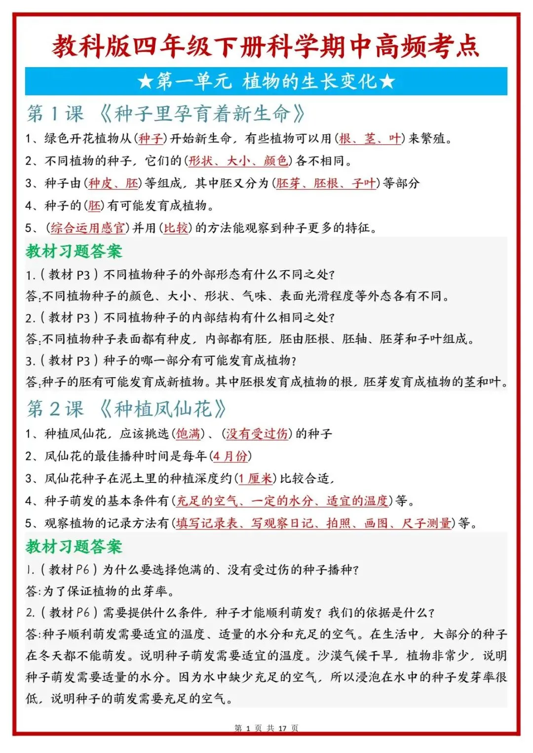 这份四年级下册科学 期中高频考点〈教科版〉汇总,严格依据原文内容顺序、逻辑层次与教学重点进行系统归纳,涵盖第一单元 植物的生长变化、第二单元 电路、第三单元 岩石与土壤三大核心模块,突出高频考点、易错点、解题思路与实践应用,语言简明、条理清晰,便于期中高效复习备考;期中考试临近了,需要的老师和家长及时领取打印出来,让孩子读一读背一背吧~#四年级科学期中必背知识点#四下科学期中高频考点