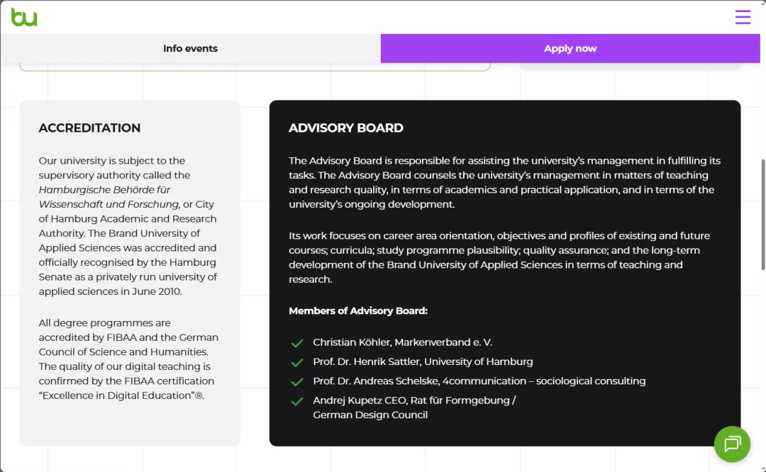 所有课程都通过了德国学科质量保证与评估局(AQAS)和欧洲国际工商管理审核基金会(FIBAA)的双重质量认证。在德国,能拿到这个“双认证”的学校,没几所。