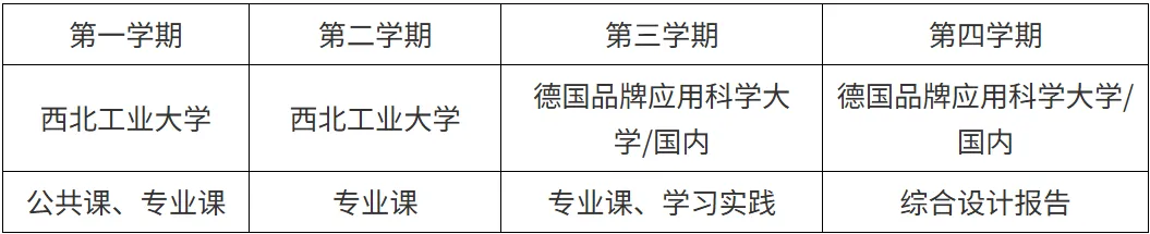 两年学制,第一年在西工大打基础,第二年到德国深度体验。既有国内学习的便利,又有海外留学的经历,性价比很高。