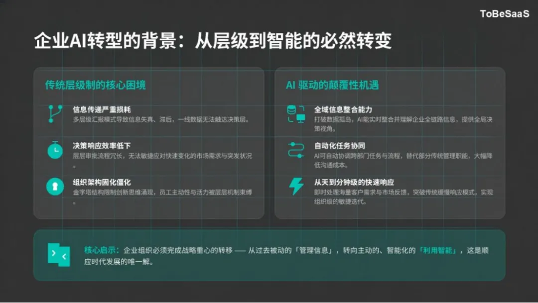 从传统现实组织架构向智能企业架构的跨越,绝非简单的流程调整,而是一场涉及核心逻辑的深刻变革。