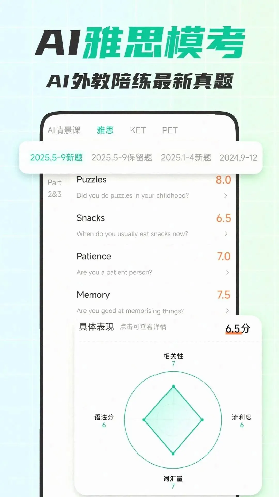 题库覆盖收录20232026年全部雅思口语真题,换题季新题12小时内更新,领先行业平均速度10天以上,确保你练的每一道题都是考场最新考点。