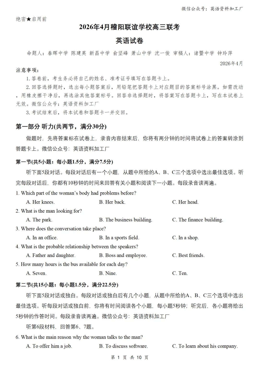 【听力】免费下载!26年3月各地高三联考/模拟考英语听力套题30套合集,含音频、答案和原文