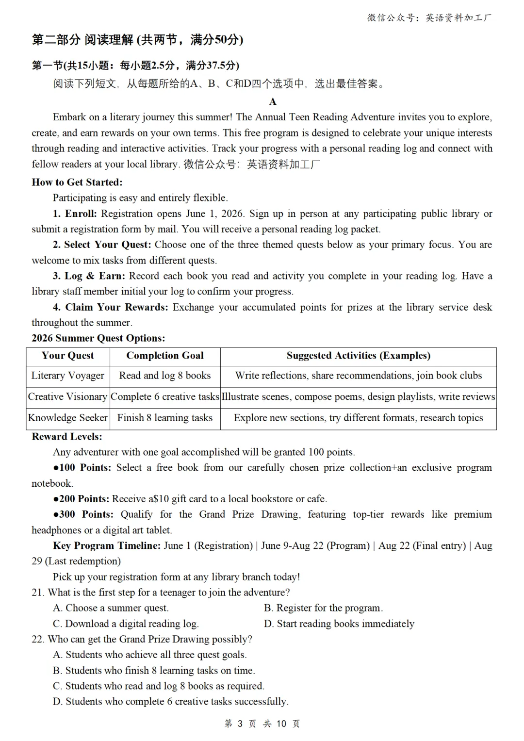 【阅读CD】免费下载!26年3月各地高三联考/模拟考英语阅读C篇、D篇各32篇合集,含答案解析