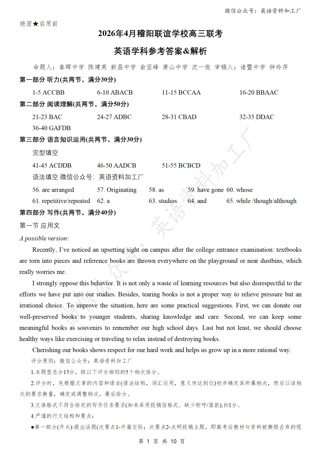 【26届试卷】免费下载!浙江稽阳联谊高三二模英语试卷+答案解析+音频(有Word+pdf版)