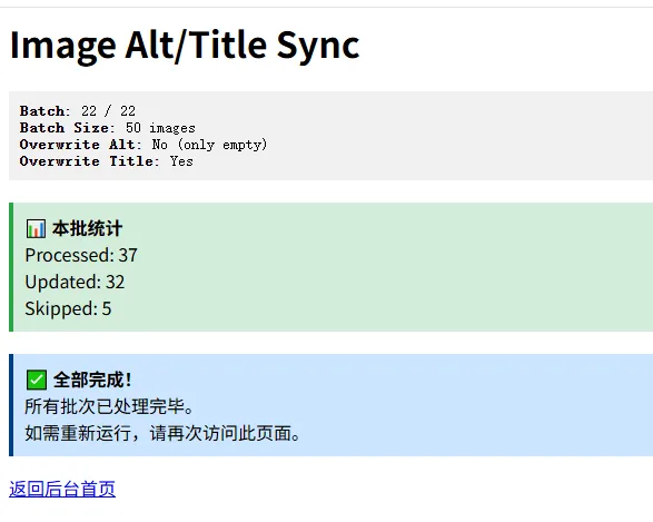 打开浏览器访问:/wp-admin/?run_image_meta_sync=1