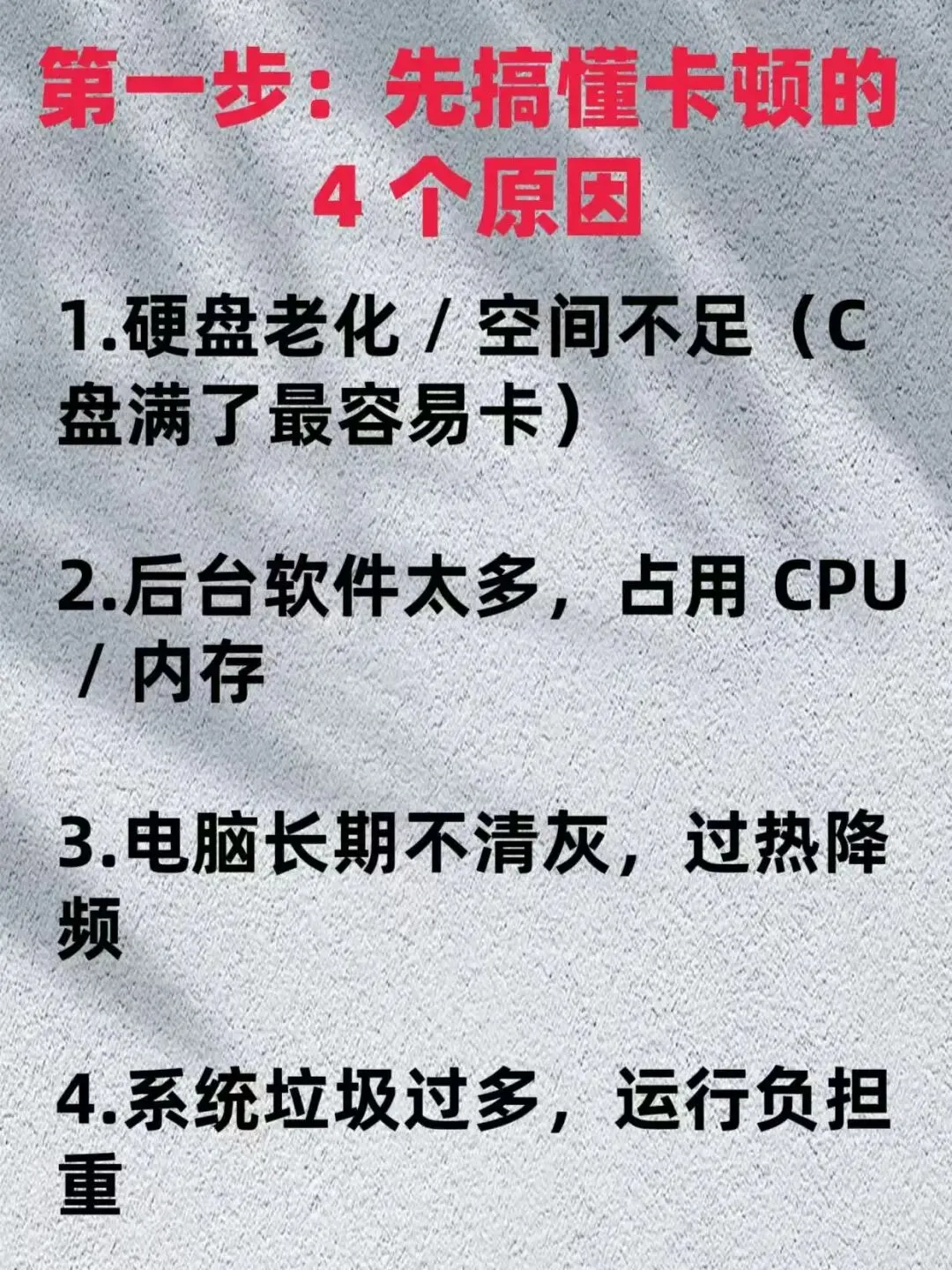 一、电脑卡顿的核心原因,别再瞎猜了