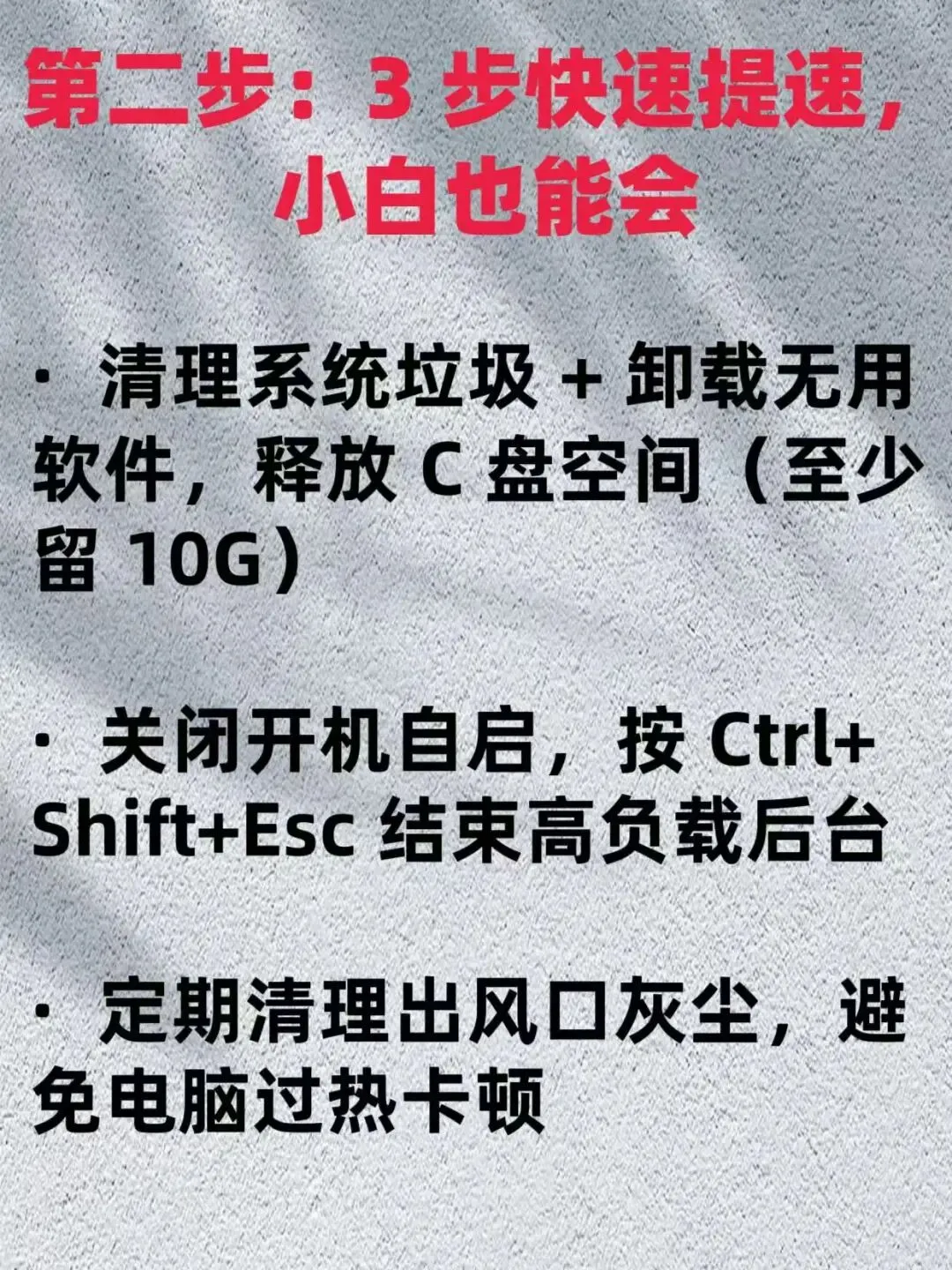 不用复杂步骤,不用专业技术,跟着做,电脑立马变流畅,分 4 步走,全程不踩坑: