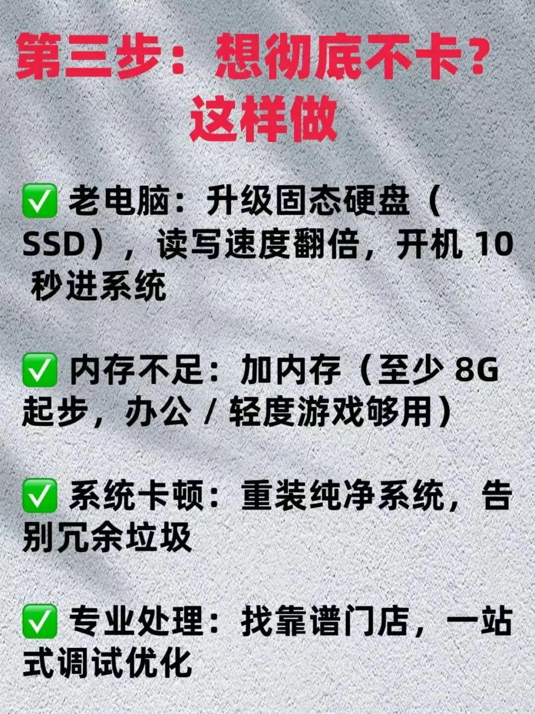✅ 如果自己不会操作,或者优化后还是卡顿,直接找专业人员处理,省心又稳妥。