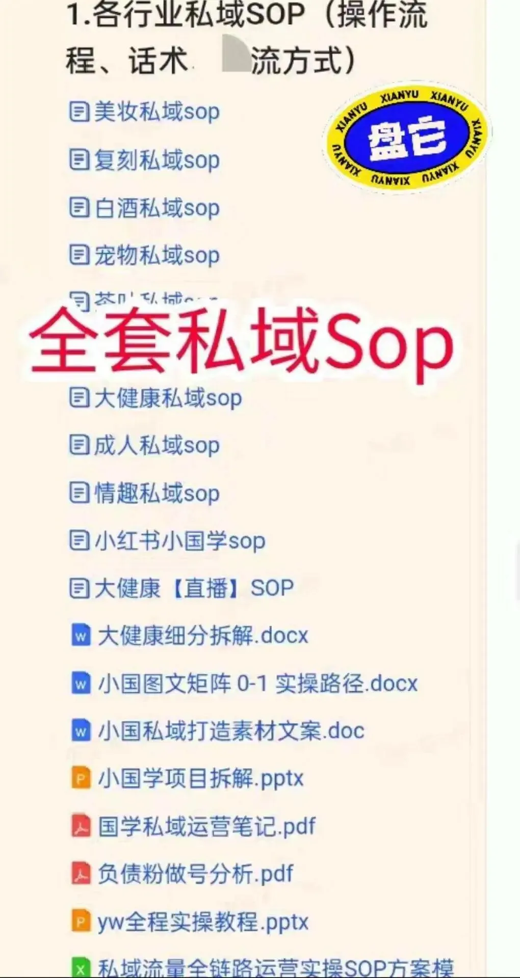 免费分享2026年全私新域SOP资料文档, 适合全行业的获客玩法 ,食神。内容包括品牌私域、门店私域和个人IP私域,每日增加被动获客,支持全行业拓客。无论电脑还是手机都可以操作,非常话合1-5年的运营人和个体副业,人无远虑,必有近忧。。所有文件均来自网络公开渠道,仅供学羽交流史用网盘链接随时失效绝了有需要的尽快保存!