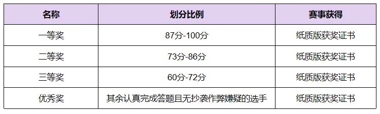 大赛设置一、二、三等奖及优秀奖,具体获奖标准如下: