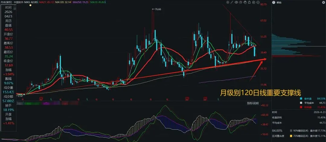 中国软件有没有可能下探到30元,月级别120日线位置,年报业绩一公布来看没有特殊情况干预,继续下探有点难度!这里是否存在业绩反转,持续关注2026年一季度业绩披露!