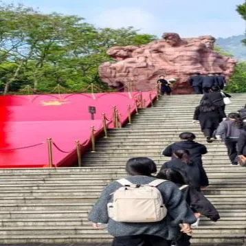 伫立在歌乐山烈士群雕前,唐彬贵同志凝望着浮雕上坚毅的面孔,眼前仿佛重现着烈士们在渣滓洞、白公馆的峥嵘岁月。而她手中那束洁白的菊花,也承载着我们这代青年党员最深切的追思。她谈道,山河无恙的今天,是无数先烈以生命为薪火换来的,作为青年党员,我们应铭记英烈遗志,传承红色精神,以担当践行青春使命。