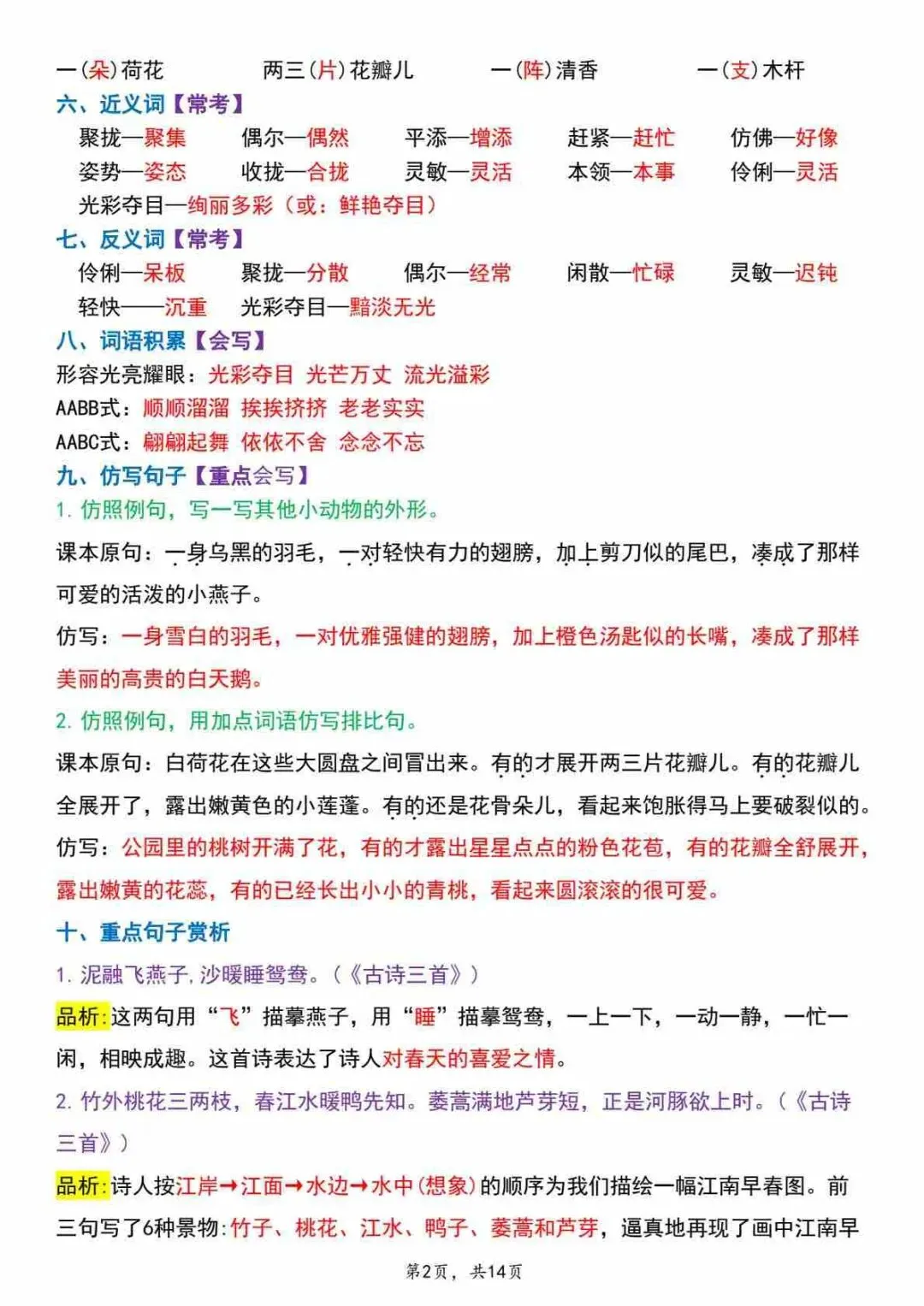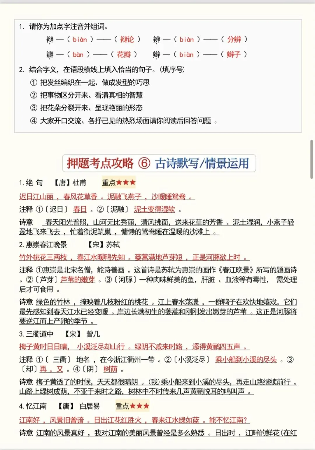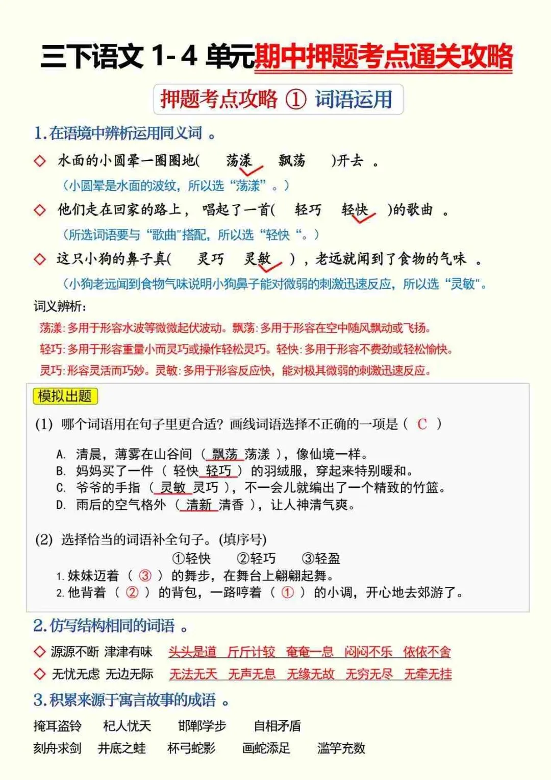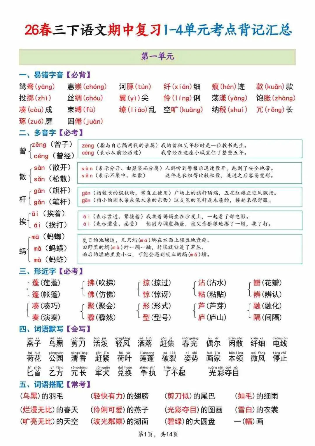 三年级下册语文期中复习干货|高清电子版可直接打印
