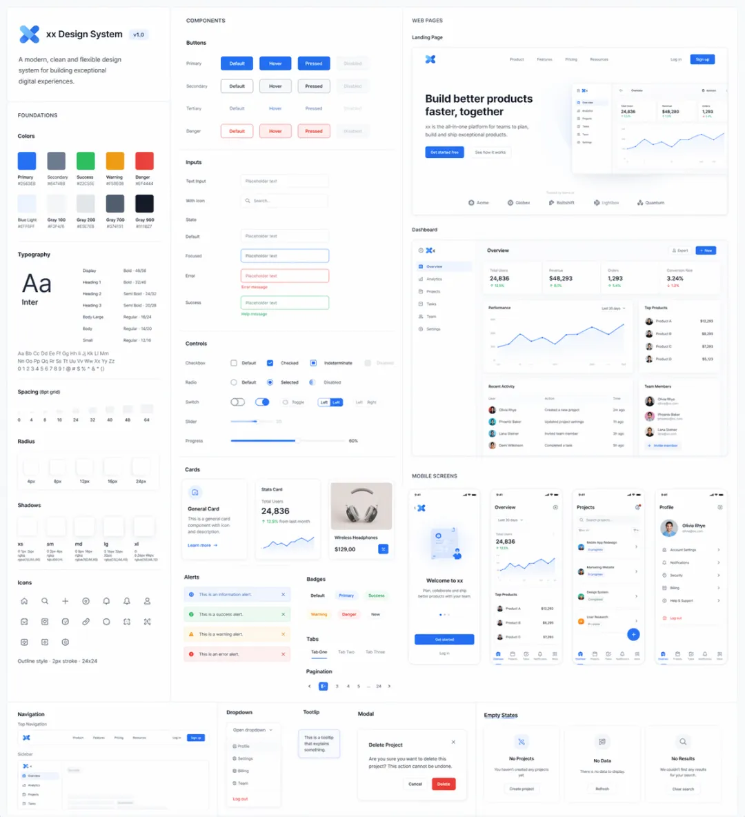 为我生成一个采用xx风格的UI设计系统,包括网页、移动端界面、卡片、控件、按钮及其他组件