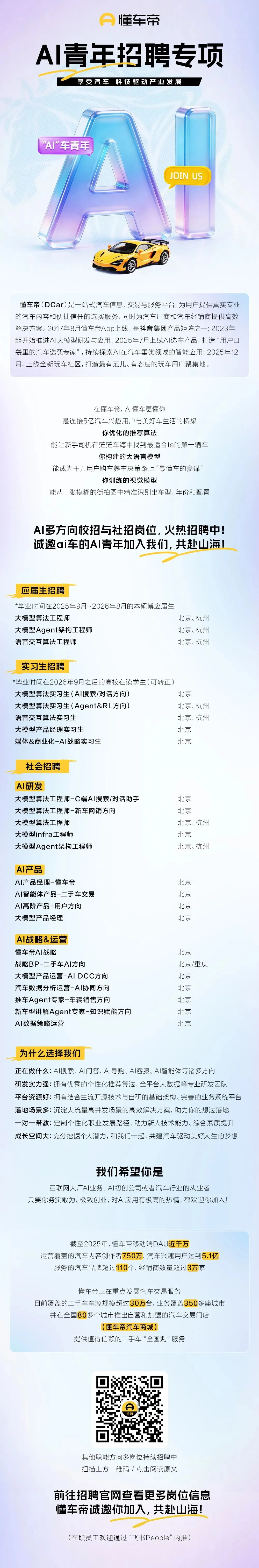 招聘 | 懂车帝AI青年招聘专项启动!