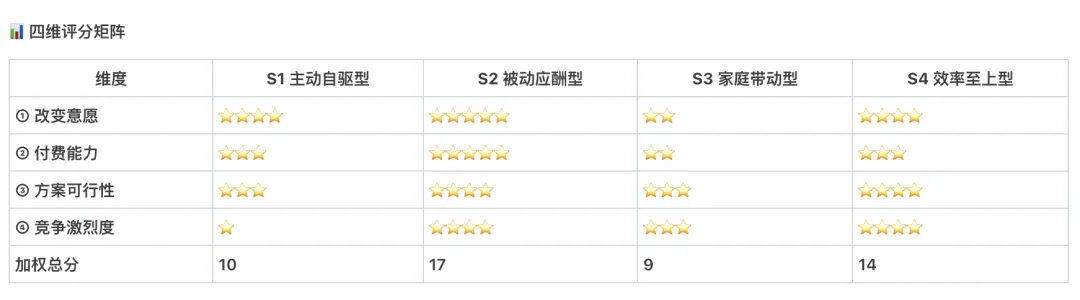 按什么分?按他们的痛点强度、改变意愿、付费可能性。