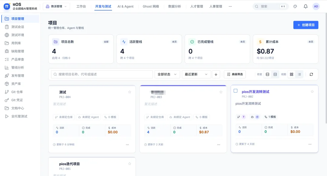 πOS从架构层面内置了多租户治理体系:角色权限控制、行为审计追踪、成本按项目归因、四级数据隔离。在企业采购场景中,治理能力不是加分项,是入场券。