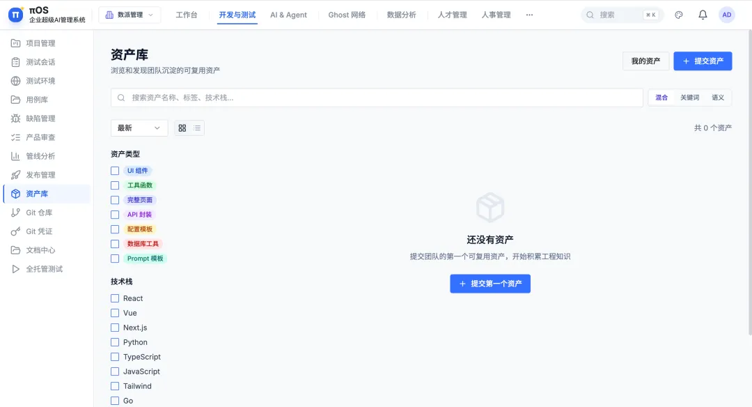 政策关注“数据确权、评估、定价机制”。πOS的工程资产库通过语义检索、版本管理和结构化元数据,让企业的AI工作产出(方案、策略、Prompt模板)沉淀为可追溯、可复用、可评估的组织资产,契合数据要素价值化的政策导向。