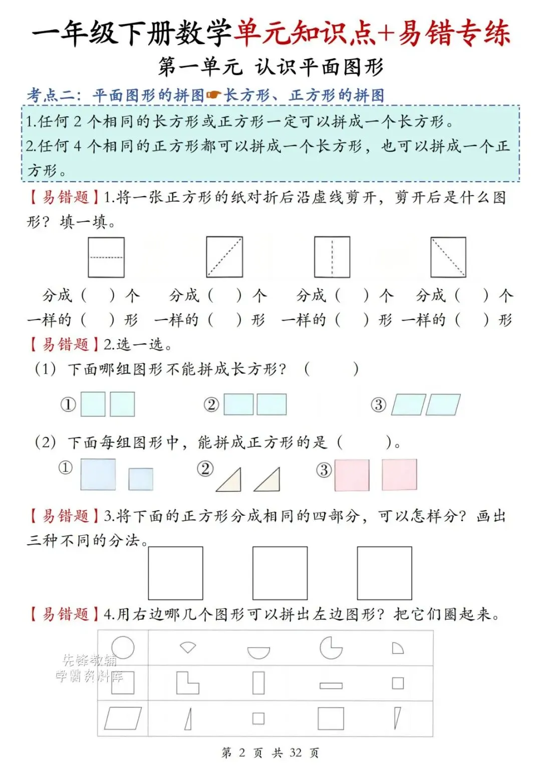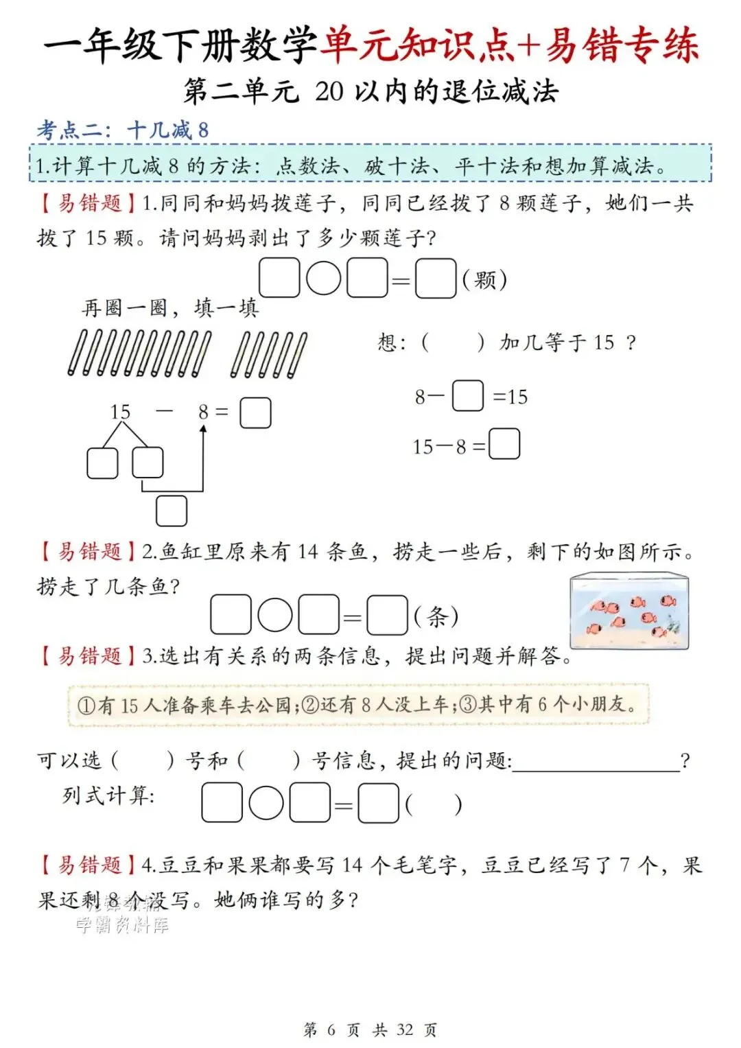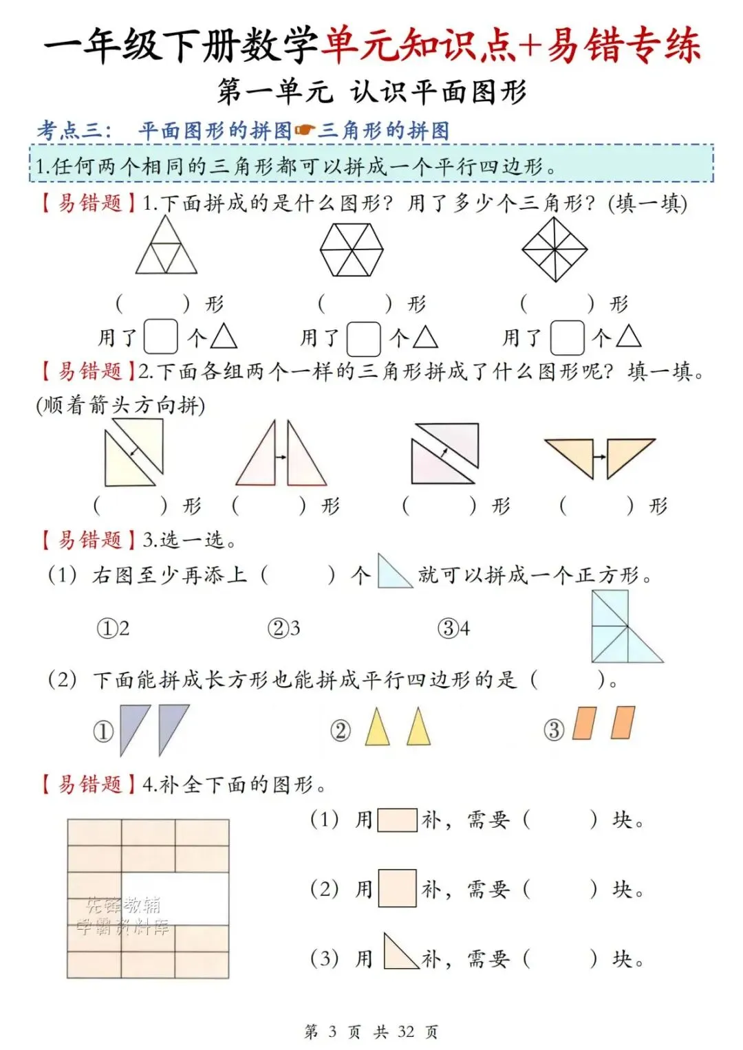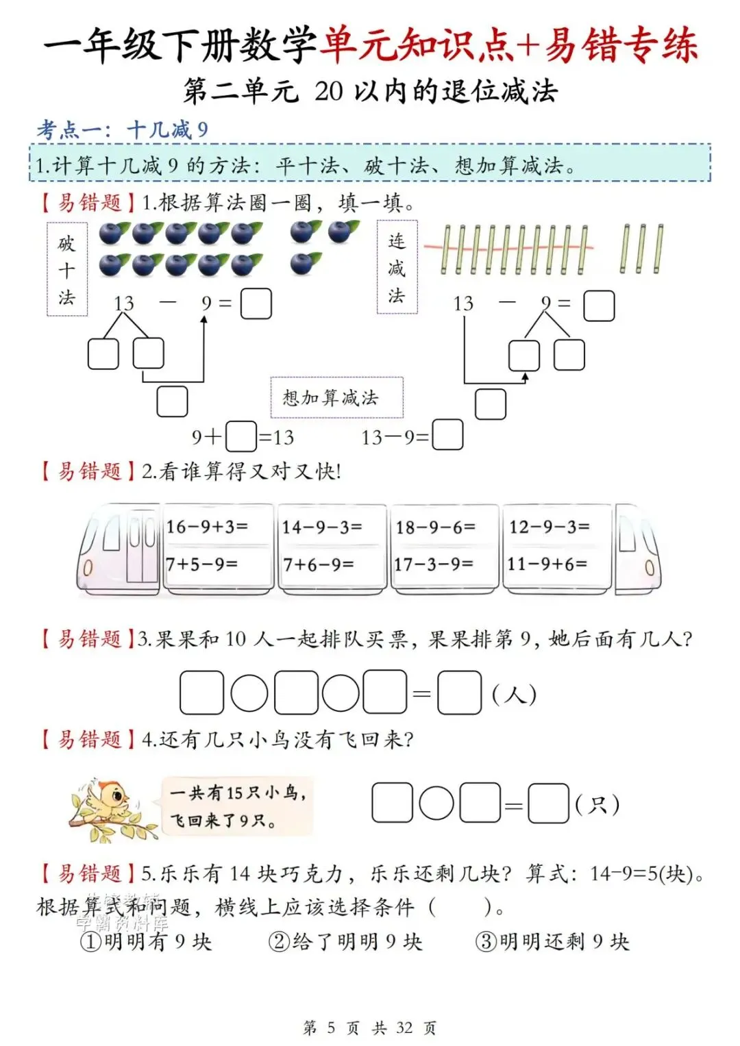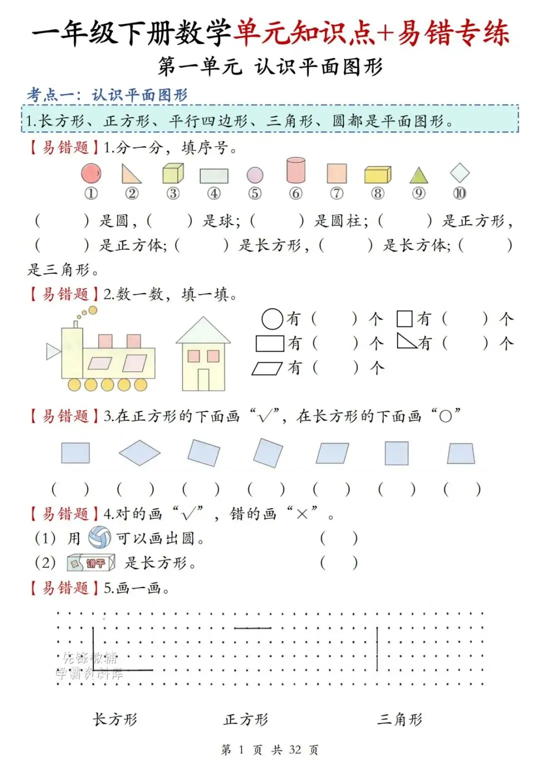 26年《一年级下册数学知识点+易错专练》电子版可打印 点击蓝字,关注我们 (温馨提示:文末有领取方式) (因篇幅有限,仅展示部分内容) 完整电子版: 左下角点击“关zhu “ 点我头像,在对话框输入:0423