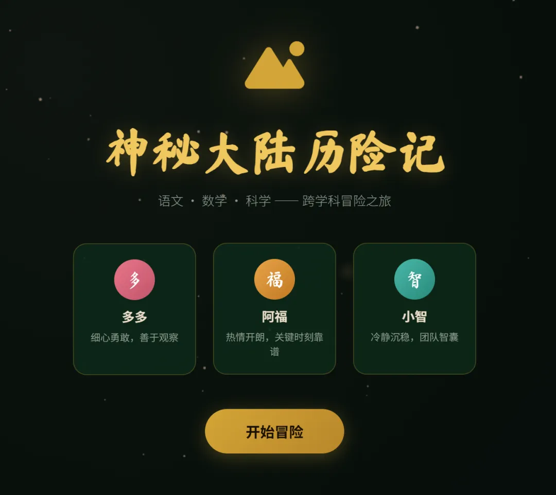 请你结合部编版小学语文六年级下册的知识,以及北师大版小学数学六年级下册的知识,还有教科版小学六年级科学下册的知识,来设计这个冒险之旅,以及图中的故事。 把这些知识非常和谐地融入到故事的过程中,并成为关卡中的题目。故事以及关卡的设定,都要符合小学六年级学生的水平和审美。