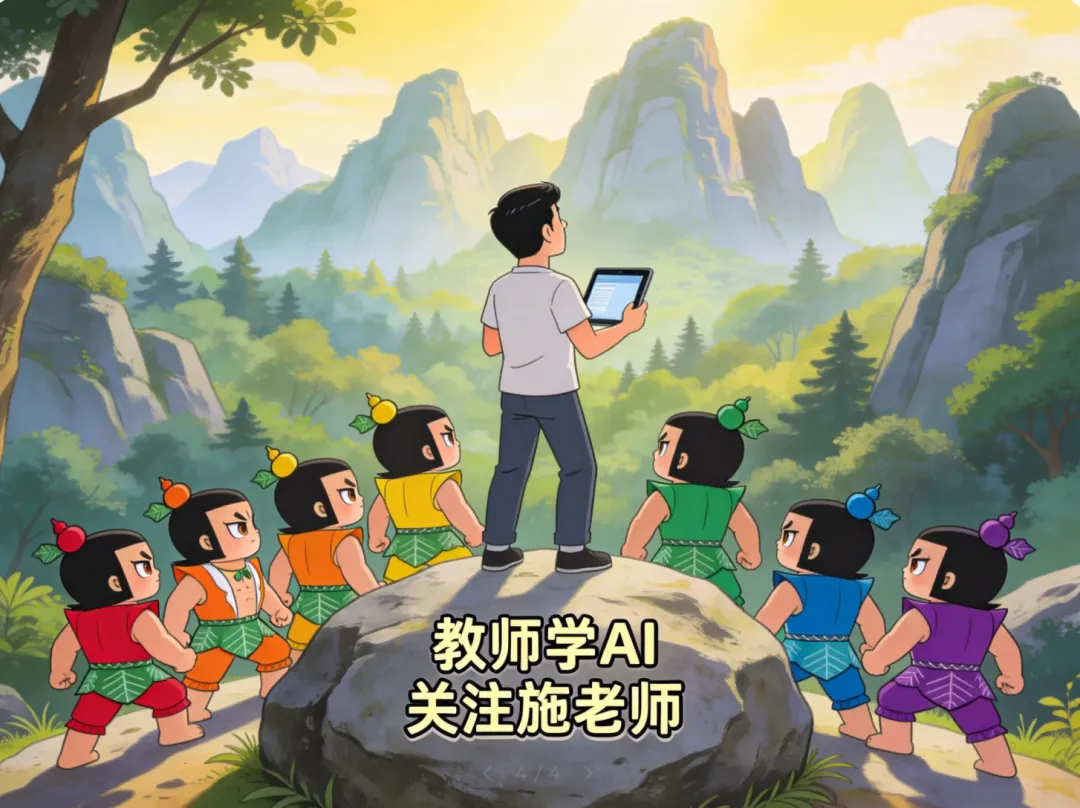 施老师创造了几个角色,设定了他们的性格,然后让AI编创一个冒险故事,融合学科的知识。