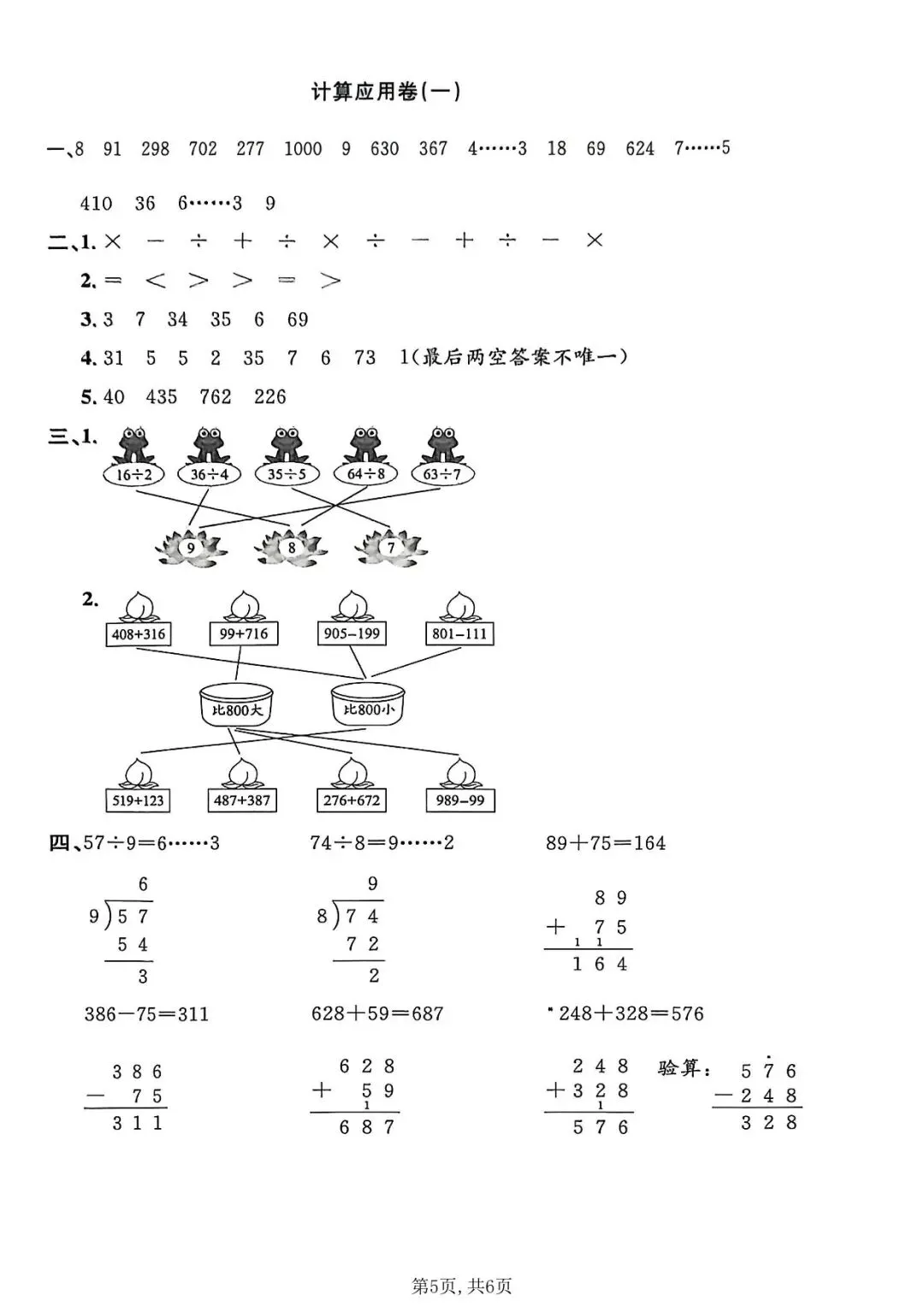 可下载丨二年级下册数学计算应用专项检测卷1《沪教版》,电子版可打印