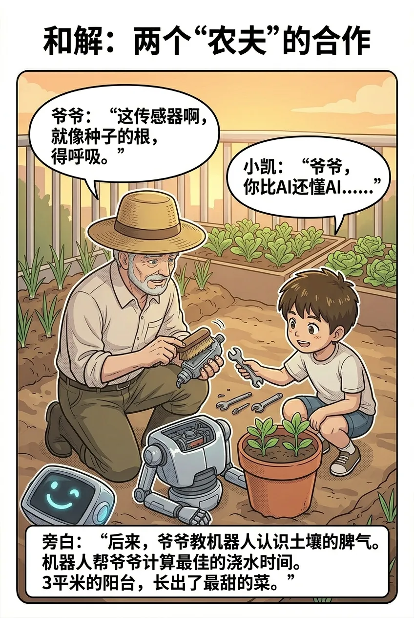 🌟 当72岁的爷爷蹲下来,用旧刷子清理机器人的传感器时,我突然明白:科技永远赢不了土地,但可以和懂土地的人做朋友。 🌟