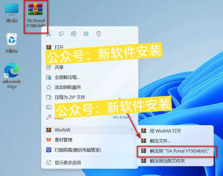 1.鼠标右键【TIA portal V19 (64bit)】压缩包(先点击“显示更多选项”)选择【解压到TIA portal V19 (64bit)】。