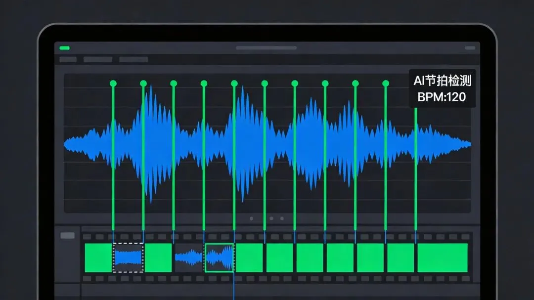 现在的AI工具能自动分析音频的节拍点,然后生成标记。你只需要把视频片段拖到对应位置就行。