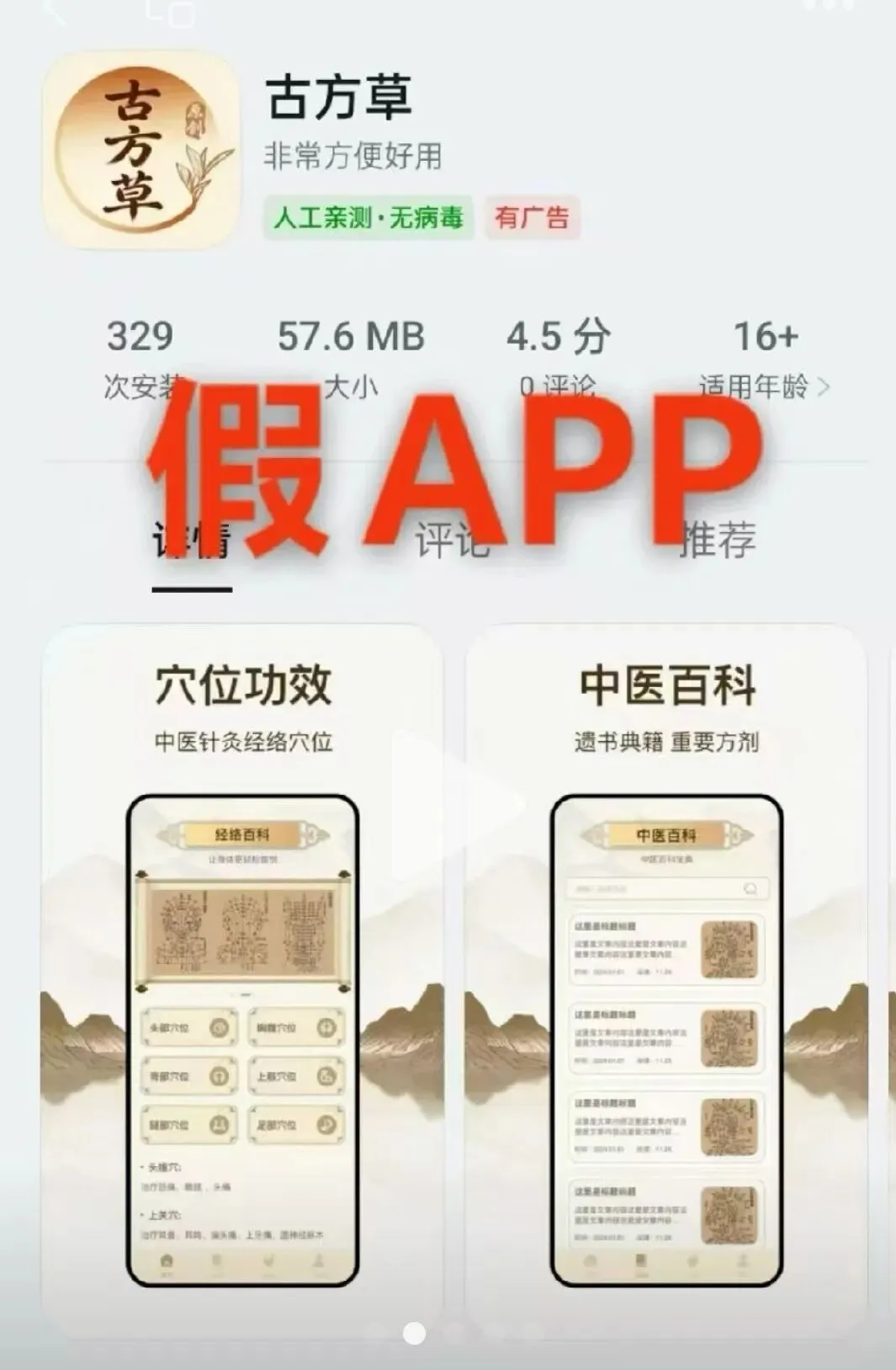 下载古方草软件请认清真假