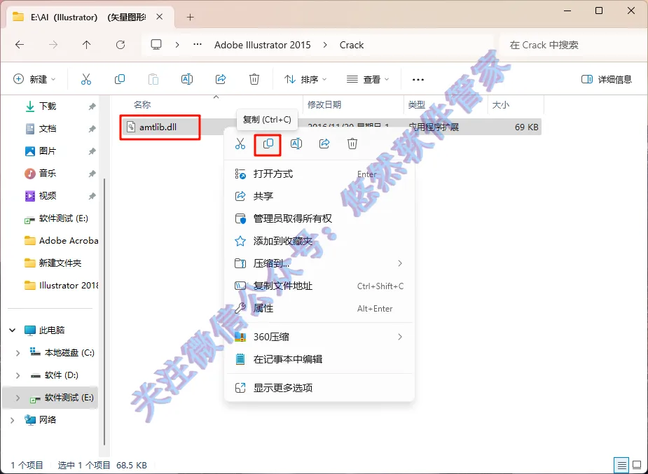 14.选中【amtlib.dll】,右键点击选择【复制】