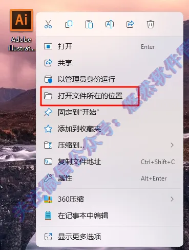 15.找到桌面【Adobe Illustrator CC 2017】图标,右键选择【打开文件夹所在的位置】