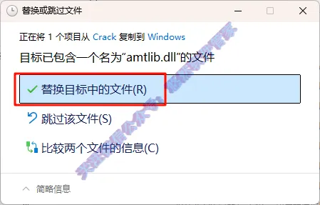 17.点击【替换目标中的文件】