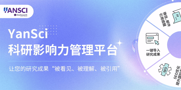 在这个影响力指标会影响项目评审、职称晋升与基金申请的时代,仅将研究“发表出来”已远远不够,更要主动“传播出去”。YanSci以AI工具提升效率、以专家支持保障质量,为每一位科研工作者提供一条“可视化、智能化、数据化”的影响力提升之路。