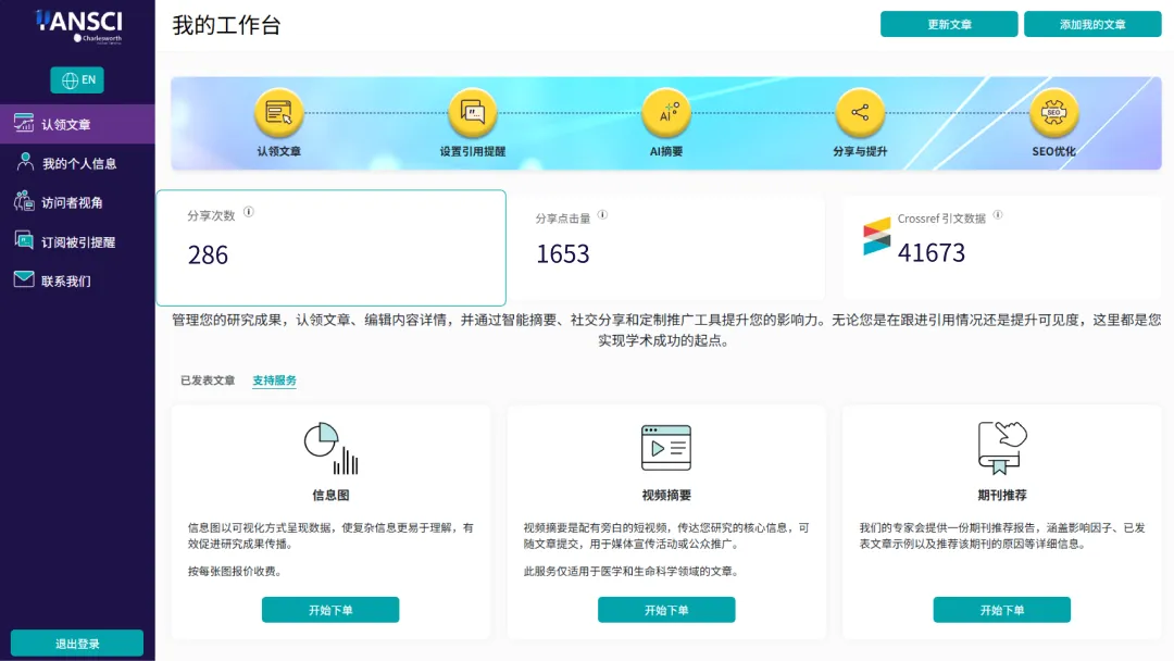 一个结合AI与专家支持的一站式科研影响力管理平台