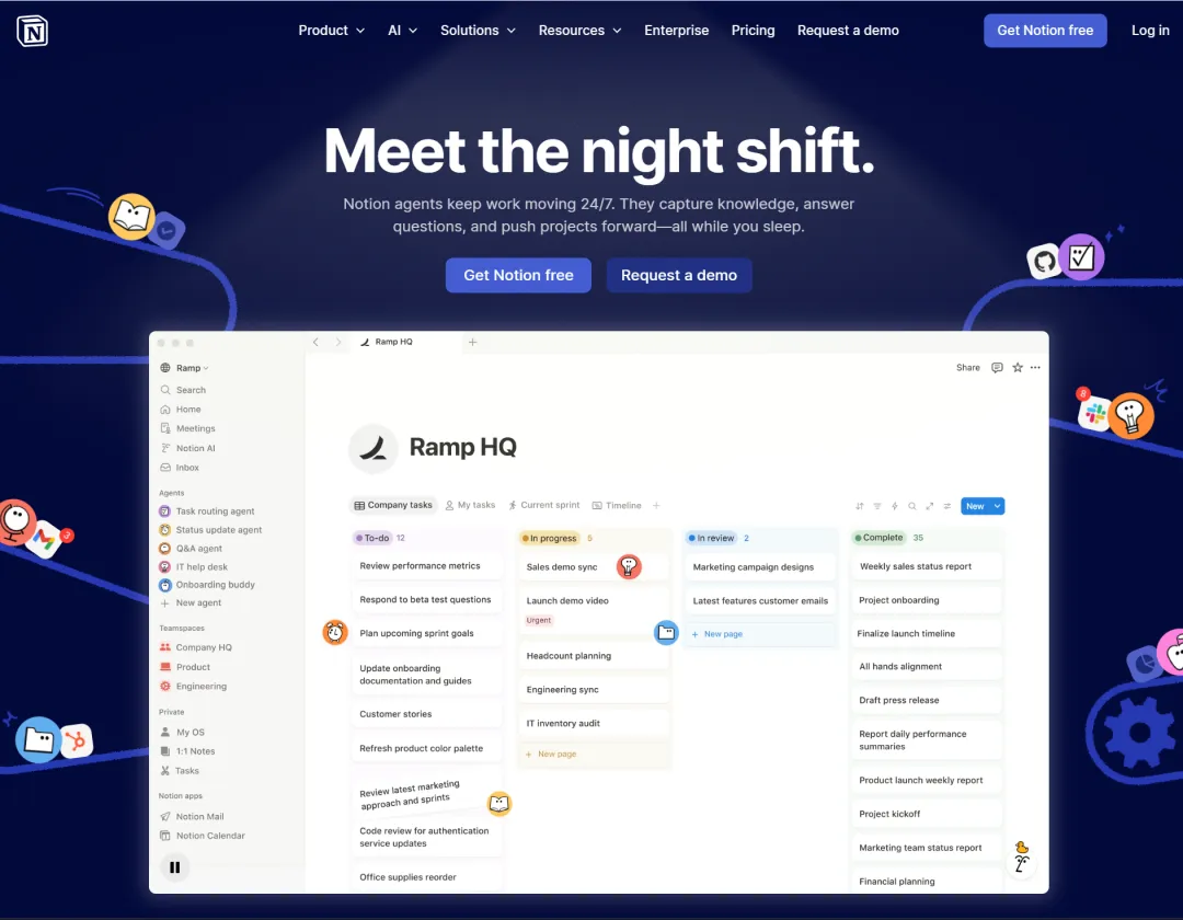 Notion 是一款集笔记、任务管理、知识库于一体的生产力工具里面可爱有趣的图标不少,界面还是挺简洁的支持创建页面、数据库、看板等多种形式自由度极高,可以根据个人需求定制工作流网页版打开速度会有些慢,但功能强大