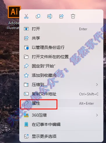 12.找到桌面【Adobe Illustrator CC 2017】图标,右键选择【属性】