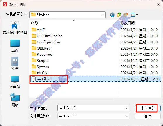 14.选择【amtlib】文件,点击【打开】